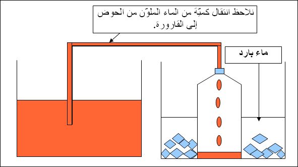 الهدف من هذا البحث أن يتعرف المتعلم على مكونات الهواء وخصائصه. مكونات الهواء الهواء هو خليط من الغازات المختلفة، أهم مكوناته النتروجين بنسبة 78 % والأكسجين بنسبة 21 %، وتكون الباقي من بخار الماء ومن غازات عديدة منها ثاني أكسيد الكربون وغاز الأرغون وغاز النيون والهليوم. غير أن الأكسجين هو أهم شيء بالنسبة إلى حياة الكائنات على الأرض وهو جسم غازي ثنائي الذرة يتكون عندما يتفاعل مع تأثيرات الضوء خاصة في المناطق الاستوائية، ثم توزعه الريح على كامل مناطق الكرة الأرضية.وقد توصل العالم الفرنسي (أنطوان لافوازييه) سنة 1775 إلى ضبط الوظائف الأساسية لهذا الجسم الغازي وهو أول من أطلق عليه اسم (أكسجين) وبين أنه يوجد في الهواء وفي الماء وفي أغلب المواد العضوية النباتية والحيوانية، وهو ضروري لتنفس الكائنات، كما بين أنه هو العامل الأساسي لتأكسد المعادن (الصدأ) وأساسي في تركيبة الحوامض. خصائص الهواء - الهواء ليس له شكل معين فهو يأخذ شكل الوعاء الذي يحويه. عندما ننفخ بالونة دائريّة ثمّ نفرغها في بالونة إسطوانيّة، نلاحظ أن شكل الهواء في البالونة الدّائريّة يختلف عن شكل الهواء في البالونة الإسطوانيّة فنستنتج أنه ليس للهواء شكل معين بل يأخذ شكل الإناء الّذي يوضع فيه. - الهواء قابل للانضغاط والتوسع. نقوم بحجز كمية من الهواء داخل حقنة ونسد فوهتها. عندما نقوم بدفع المكبس، يتقلص حجم الهواء ويرتفع ضغطه. وعند سحب المكبس، يزداد حجم الهواء وينخفض ضغطه. فنستنتج أن الهواء قابل للانضغاط والتوسع. - للهواء كتلة. عندما نأخذ كرة منتفخة ونزنها ثم نفرغها من الهواء ونعيد وزنها نلاحظ أن كتلتها وهي منتفخة أكبر من كتلتها وهي فارغة من الهواء فنستنتج أن الفارق بينهما هو وزن كتلة الهواء. وكتلة 1 لتر من الهواء في الظروف العادية يساوي 1.3 غرام. - الهواء قابل للانتشار إذا وضعنا فوهة بالونة غير منفوخة في فوهة بالونة منفوخة، نلاحظ انتقال كميّة من الهواء من البالونة المنفوخة إلى البالونة الأخرى. فنستنتج أن الهواء قابل للانتشار. - يتمدد الهواء بمفعول الحرارة ويتقلص بمفعول البرودة. عندما نغطي فوهة قارورة ببالونة ونضعها في حوض مملوء بالماء ثم نسخنه، نلاحظ انتفاخ البالونة لأن تأثير حرارة الماء الموجود في الحوض نتج عنه صعود الهواء إلى فوق ممّا ساعد على انتفاخ البالونة. فنستنتج أن الهواء يتمدد بمفعول الحرارة. وإذا أخذنا قارورة مملوءة بالهواء ونقوم بسدّ فوهتها بسدّاد يمرّ منه أنبوب توصيل منغمر طرفه في حوض مملوء بماء ملوّن ثمّ نضع القارورة في حوض آخر مملوء بالثّلج. نلاحظ انتقال كميّة من الماء الملوّن من الحوض إلى القارورة. لأن الهواء الموجود في القارورة أصبح باردا تحت تأثير الثّلج، فنزل إلى قعرها وتقلص فتنقلت كميّة من الماء الملوّن معوّضة الهواء الّذي تقلّص. فنستنتج أن الهواء يتقلص بمفعول البرودة. - الهواء البارد أثقل من الهواء الحار. لماذا توضع خزانات التجميد في الجزء العلوي في الثلاجات؟ توضع هذه الخزانات في الجزء العلوي من الثلاجات للحصول على الدورة المطلوبة للهواء داخل الثلاجة، فالهواء البارد أثقل أو أكثف من الهواء الدافئ وببرودة الهواء بوساطة الثلج يسقط إلى قاع الثلاجة، وهذا يدفع الهواء الدافئ الأقل كثافة إلى أعلى حيث يأتي في ملامسة الثلج فيبرد، وبهذه الطريقة تتوافر دورة ثابتة للهواء تحاول حفظ كل الهواء المحبوس عند درجة حرارة واحدة. - الهواء عازل للكهرباء. تحميل الملف