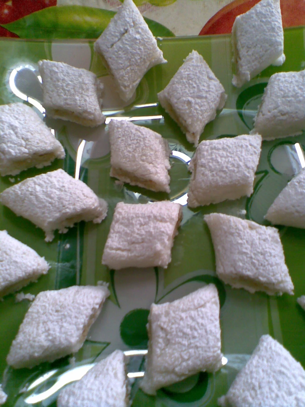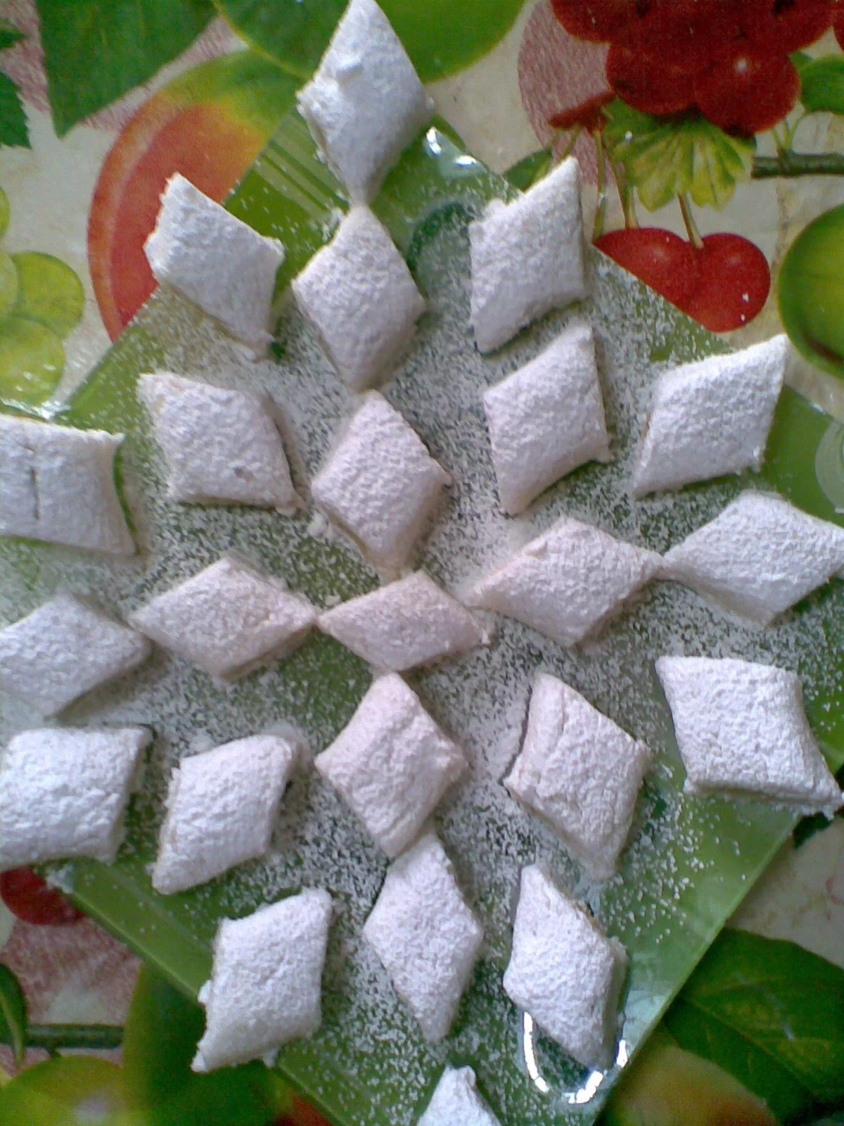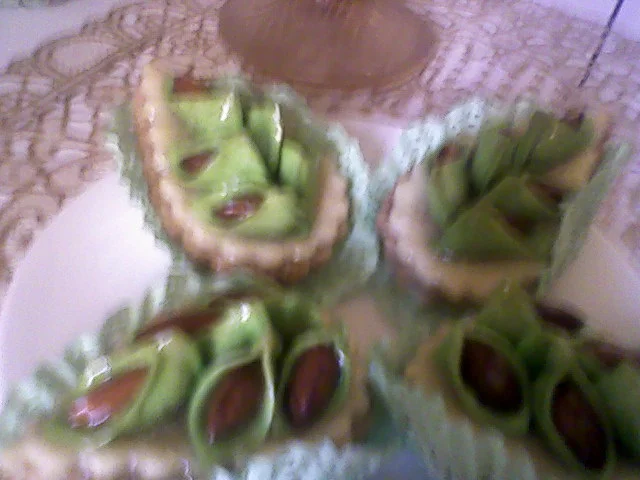 للعجينة 4-كيلات فرينة كيلة مارغارين قرصة فاني ماء زهر للتزيين -باكي ديول لماع ذهبي -مارغارين للحشو -3 كيلات لوز مرحي -كيلة سكر عادي -مبشور ليمون 4 الى 5 بيضات عســــــــــــــــــ ل نخلط الفرينة مع المارغرين جيدا +الفاني ونلم العجينة ب ماء زهر نتركها جانبا ترتاح ثم نرقها في ماكنة العجينة 4 ثم 7 نضعها في قوالب القنيدلات نحضر الحشو نخلط اللوز مع السكر و مبشور الليمون ثم نبلل العجينة بالبيض للحصول على حشو نوع ما ليس كثيرا طبعا. نقطع اوراق الديول الى دوائر قطر 4 سم ثم نملئ بالحشو 3/4 المول . ناخذ الدوائر قطر 4 سم نطوي الدائرة على 2 ثم على 2 نحصل على وردة بواسطة عود اسنان نثقب الحشو و نثبت الوردات م 4 وردات بادخلها داخل الحشو ندهنها بالمارغرين(يجب ادخال الوردات جيدا في الحشو لان الحشو رايح يطلع عند الطهي ) ثم نطهيها في فرن لمدة 20 دقيقة حتى تأخذ اللون الذهبي و فور اخراجها من الفرن نغطسها في العسل المعطر بماء الزهر و نرش قليل من اللماع الغذائى الذهبي حواف الديول. المقادير: للعجينة: 4 كيلات فرينة كيلة زبدة قرصة ملح شوية ماء الحشو: 3 كيلات نواد كوكو = جوز الهند كيلة سكر شوية خميرة تاع الgاتو و6 بيضات الكيفية: خلطي الفرينة مع الزبدة وشوية ملح وبللي بالماء حتى تتحصلي على عجينة طرية أتركيها مدة لترتاح للحشو ![]() أخلطي جوز الهند مع السكر وأضيفي القليل فقط من الخميرة ( قرصة برك مايش باكي كامل) ثم بللي بالبيض حتى يتجانس ( مايش شرط 6 بيضات كامل علا حساب كبر البيض) ![]() ضعيه جانبا ثم قومي بحل العجينة ![]() ![]() بواسطة الألة لازم تجي رقيقة أنا حليتها في 5 ![]() قومي بدهن ليمول بشوية زبدة باش متلصقش فيهم العجينة ![]() ثم ![]() ![]() املئيها بالقليل من الحشو( متعمريش بزاف باش ميسيحش) ![]() حطيها في الفرن على درجة حرارة متوسطة ![]() لما يصفارو الحواشي نحيها خليها تبرد شوية وأسقيها بعسل سخون وذري عليها شوية نتاع فستق = بيستاش وهذا شكلها النهائي ![]() المقادير 3كيلات جوز الهند(نواد كوكو)(500غ) نصف كيلة حليب غبرة نصف كيلة سكر عادي 2بيضات وصفار ربع كيس خميرة 150غ زبدة مقدار 3ملاعق ماء الزهر مبروش القارص وعطر الفاني ونضيف القليل من الفرينة للتزين: بياض بيضة عصير حبة قارص ونعجن بسكر نونورس نحضر الشاربات ونضف لها اللون الازرق عجينة اللوز طريقة التحضير: نرحي جوز الهند مع الحليب وبعد ذالك نضف له السكر ونكمل رحيه نضعهم في وعاء ونضف عليهم المكونات المتبقية والقليل من الفرينة نطرح العجينة ونطبعها على شكل مربع نطهيها في فرن معتدل على درجة حرارة 180د ولما ينضج نتركه يبرد ونحضر القلاصاج: 1نخلط بياض البيض مع عصير القارص ونعجن بسكر نونورس وبعد ذالك نحضر الشاربات المكونة من كاس ماء ونصف كاس سكر نتركها تغل ثم ننزعها من النار ونضف عليها الملون الازرق ونحل بها القلاصاج وبعد ذالك نغطس الحبة ونضع لها خطوط للزينة كما هو مبين في الصور ونضع فوقه وردة صغير من عجينة اللوز المقادير 3كيلات فرينة 1كيلة سمن ملح ونعجن بلماء الحشوة 3كيلات كوكاو كيلة سكر ناعم مقدارمغرف اكل سمن قرصة خمير صفار بيضة طريقة التحضير: خلط 3كيلات فرينة مع كيلة سمن والملح نقسم العجينة الثلاثة نترك الاول بيضاء ونعجنها بلماء والثانية نضف لها اللون البنفسجي ونعجنها بلماء والثالثة بلون الوردي ونعجنها بلماء نطرح العجينة الاول ونقصها مربعات والثانية ايضا وثالثة كذالك ونضعهم فوق بعضهم الثلاث ونشكل القرنفلة كما بشكل المقادير : 2 بيض 1 كاس سكر 1 كاس زيت نصف كاس حليب نصف كاس كاكاو 1 كاس لوز او كوكاو مرحي 2 خمارة 2 كاس فرينة فاني باطة فلان اي نوع انا استعملت نوارة فاني التحضير نضرب البيض مع السكر و الزيت مليح ثم نزيد الفلان و نخبط ثم نضيف فاني و اللوز و الحليب و نخلط الكل ثم نغربل الفرينة مع الخمارة و الكاكاو و نضيفهم للخليط السابق و نضع الكل في قالب مدور مدهون مليح بالزبدة و ندخل الكيكة تطيب ;لما تطيب نخليها تبرد ثم نزوقها بقلاساج شيكولة و لوز ايفيلي;و نشا الله تعجبكم. وصفة حلوة غريبية الزيت ![]() المقادير: 500غ