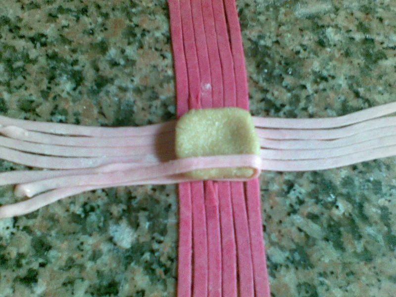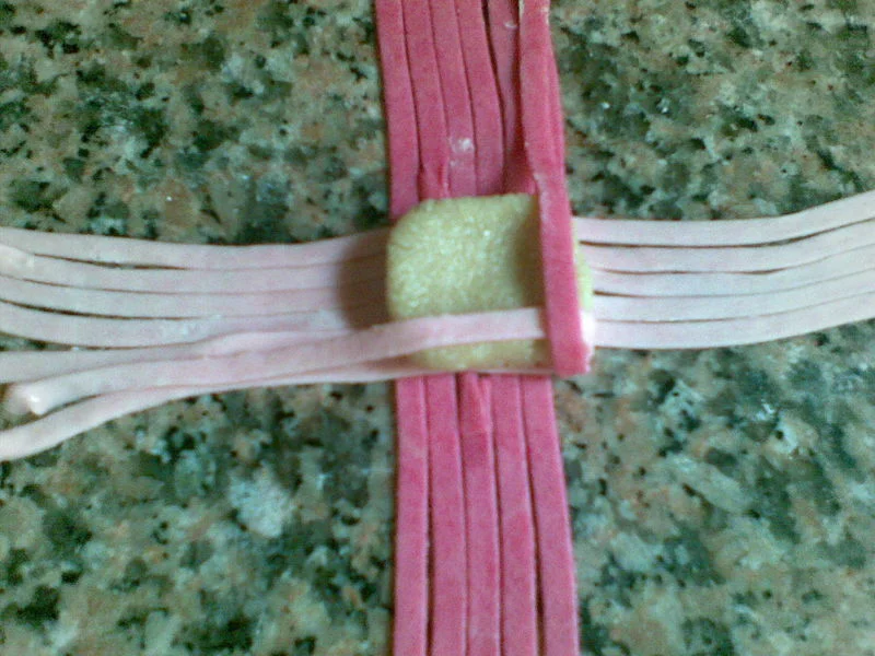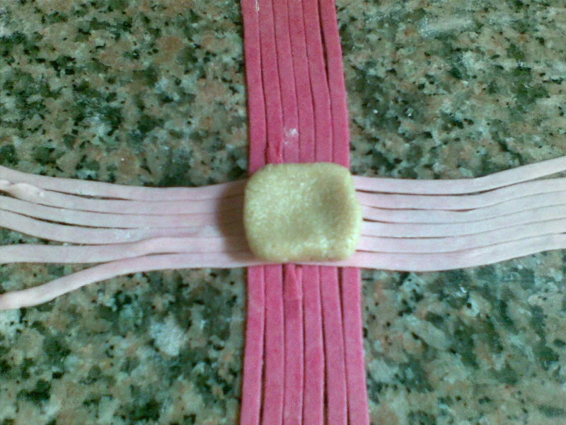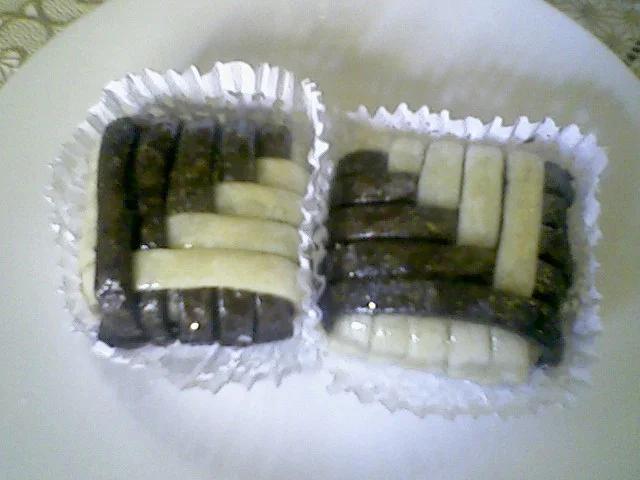 قاطو القطيفة المقادير 500غ مرغرين كاس و نصف سكر قلاصي 3كوؤس كوكاو مرحي ارطب 3ملاعق اكل بودرة الكاكاو 4 صفار بيض 2خميرة فاني فرينة الكريمة100غ زبدة+ سكر قلاصي التزيين رطل نوات كوكو(جوز الهند) رطل معجون الطريقة اخدمي الزبدة +سكر مرهم ضفي صفار البيض حبة حبة مع الخلط + الكاكاو + الكوكاو و خلطي + فاني + الخميرة و لمي الكل بالفرينة حتى تتماسك و تصبح عجينة طرية و ملساء حليها بالحلال سمك نصف سم ثم قطعيها بالطابع يكون على شكل وردة ضعيها فى صينية الفرن و ادخلها الفرن 15د انزعيها تبرد حضري الكريمة ضربي المرغرين + السكر الناعم حتى تتحصلي على كريمة لصقي كل قطعتين من الحلوى بالكريمة حضري التزيين خذي مقلاة ضعي فيها كاس نوات كوكو + 3ملاعق سكر قلاصي و حمصيه على النار مع التحريك المستمر دون توقف لانه يحترق اذا توقفتي حتى يصبح لونه اصفر ضفي له 2ملاعق كاكاو حركي حتى تتحصلي على نوات كوكو بني غامق ادهني كامل حبة القاطو بالمعجون جيدا ثم مرريها فى جوز الهند البني بعد ذلك خذي شكولاطة ذائبة و ضعي قطرة فى الوسط لتتحصلي على شكل وردة نأخد 250غ زبدة طرية + كأس سكر ناعم نمزجهم جيدا حتي يصبح الخليط كريمة ثم نضيف 4 صفار بيض + القليل من الفانيليا +ملعقة صغيرة خميرة حلوى ثم نضيف كاوكاو محمص مرحي رقيق جدا حتى الحصول على عجينة متماسكة نأخد تقريبا 1 كلغ كاوكاو ثم قومي بعمل حربوش ثم نبسطه قليلا من فوق لنحصل تقريبا على عرض 4 سم ثم نقطع مربعات 4 سم × 4 سم نغمسهم في جلجلان محمص حب ومن جهة نقوم بعمل عجينة الربط نأخد 3 فناجين مملوءة فرينة + فنجان مارغارين ذائبة +القليل من الملح نرشها بشوي ماء زهر حتى الحصول على عجينة متماسكة نعجنها قليلا ثم نأخد القليل فقط نضع فيه القليل من صبغة حمراء للحصول عجينة وردية والباقي نلونه باللون الأخضر نبسط العجينة الخضراء ثم نقطع أشرطة بواسطة الجرارة عرضها تقريبا 0.5 سم ثم نقوم بربط المربعات اللتي وضعناها في الجلجلان على شكل كادو ونقوم بعمل ورود من العجينة الوردية نبسط العجينة الوردية رقيقة ثم نقطع دوائر صغيرة نطوي الدائرة على 2 ثم نلفها بشكل دائري ونقطع الزائد من تحت ونثبثها في وسط المربع فوق الشريط الأخضر ثم نضع الحلوى تطهى على درجة حرارة متوسطة بعدها نغمسها في عسل مخفف بماء الزهر ونرشها من فوق بالقليل من ملمع الحلويات (Brillant Alimentaire ) أي لون المقادير: 500غ زبدة طرية 400غ سكر ناعم و 100غ فلان ذوق فاني(flan vanille) 4 بيضات 150غ حلوة الترك ملعقة ونصف أكل حليب بودرة ملعقة أكل نشاء كيس خميرة حلوى فرينة حسب الحاجة الحشو : مربى أي مربى تحبين( فراولة .مشمش .....) ممكن تستخدمي المربى فقط في الحشو أو ممكن خلط أي مكسرات مع المربى لوز أو كاوكاو أو جوز وتستخدميها في الحشو التزيين رقائق اللوز (les amandes éffilées) سكر ناعم التحضير نضع الزبدة والسكر الناعم والفلان نخلطهم بالضراب الكهربائي حتى نحصل على كريمة بيضاء بعدها نضيف البيض الواحدة تلوى الاخرى ونخلط بالضراب ثم نضيف حلوة الترك والحليب البودرة والنشا ونخلط باليد ثم نضيف الخميرة والفرينة شيئا فشيئا حتى نحصل على عجينة متماسكة نترك العجينة ترتاح ربع ساعة بعدها نقسم العجينة الى قسمين و نأخذ صينية فرن مستطيلة ندهنها بالزبدة ثم نبسط الطبقة الاولى من العجينة بسمك 1سنتم ونضع فوقها طبقة من المربى ويفضل يكون لونه أحمر أو تضعي الحشو المكون من المربى والمكسرات ثم نبسط الطبقة الثانية من العجينة لتسهيل نقل العجينة أنا بسطتها فوق قطعة نيلون كي لا تلتصق و نقلتها ووضعتها فوق طبقة المربى ثم ندخل الصينية للفرن تطهى ومن حين لآخر نراقب الطهي لأن العجينة تنتفخ فنحاول إنزالها بإيدنا ونبقى نراقب الطهي من حين لآخر إلى غاية يصبح لونها أصفر بعدها نترك الصينية تبرد ثم نضع فوقها طبقة من المربى ثم رقائق اللوز ونضع سكر ناعم في مصفاة ناعمة وننثر القليل من السكر فوق الرقائق ثم قطعيها مربعات وممكن تزيين وسط المربع بنصف حبة جوز أو حبة لوز غير مقشرة المقادير: نمزج اللوز مع السكر الناعم + عطر الفانيلا جيدا ثم نضي