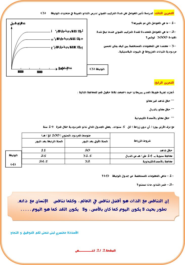 الزيادة لان الكمية الاولى استهلكت يلزم زيادة اكبر ترفع المتنتوج لعل الكمية اكبر من حاجة النبات فيصبح سام لانها احسن ظروف انتاج بتوفر النوعين |