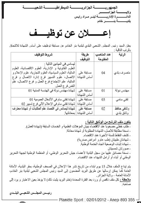 ÅÚáÇäÇÊ ÇáÊæÙíÝ Ýí ÇáæÙíÝÉ ÇáÚãæãíÉ ÇáÕÇÏÑÉ Ýí ÇáÌÑÇÆÏ ÇáíæãíÉ