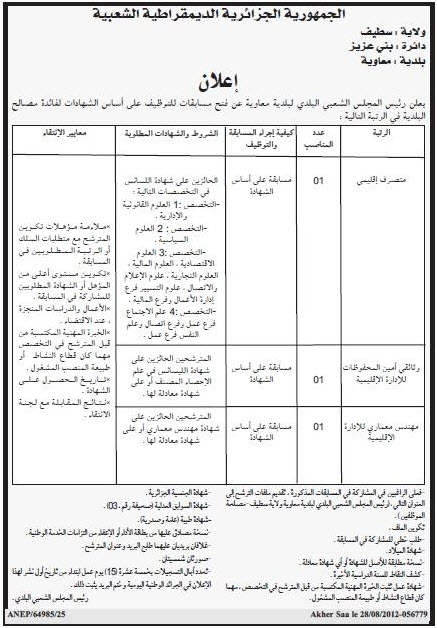 ÅÚáÇäÇÊ ÇáÊæÙíÝ Ýí ÇáæÙíÝÉ ÇáÚãæãíÉ ÇáÕÇÏÑÉ Ýí ÇáÌÑÇÆÏ ÇáíæãíÉ