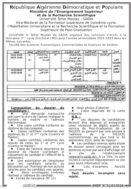 ![]() ديوان مؤسسات الشباب ولاية سعيدة أوت 2014