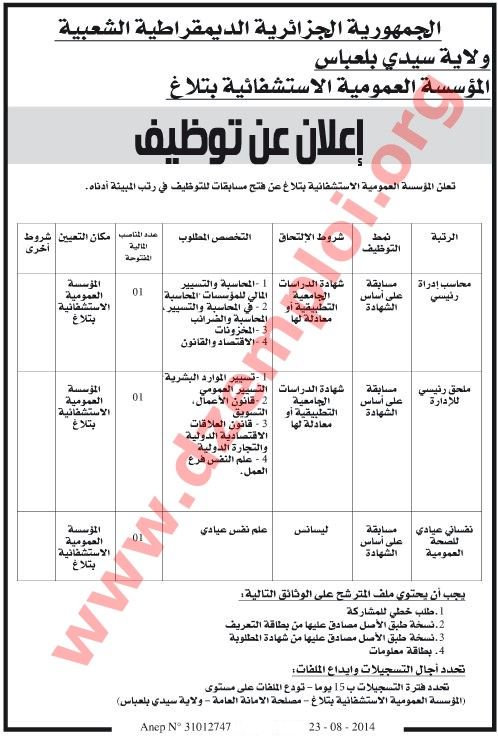 منتديات الجلفة لكل الجزائريين و العرب - عرض مشاركة واحدة - توظيف بولاية سيدي بلعباس