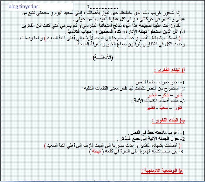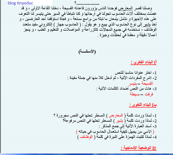 1ـ أعرب ما تحته خط في النص ؟ (01)