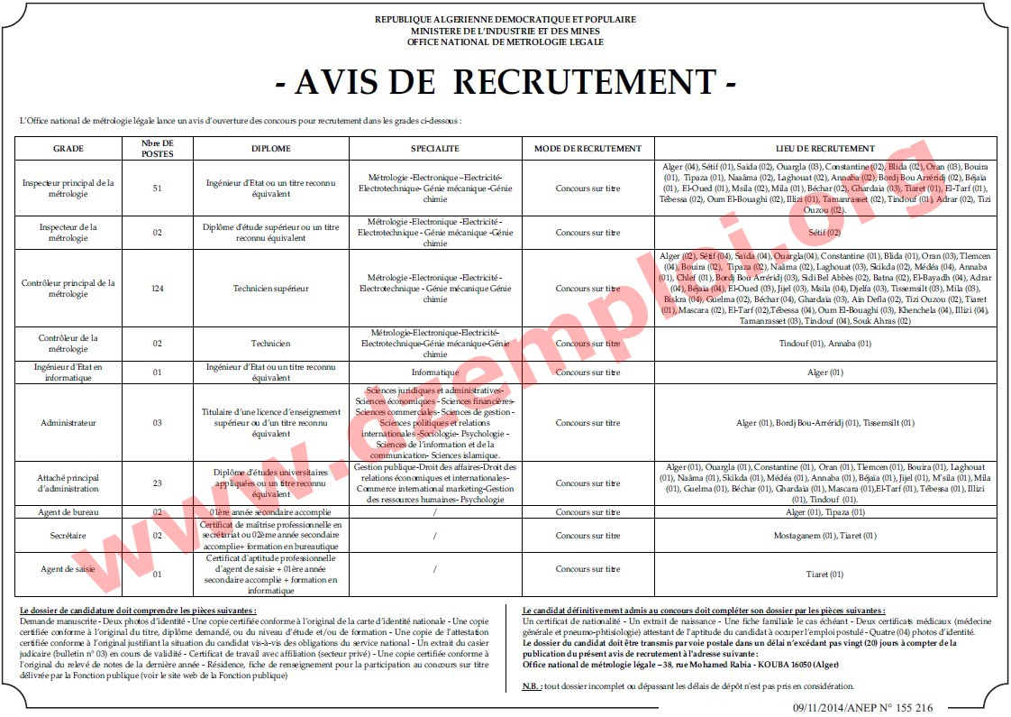 الديوان الوطني للقياسة القانونية يوظف 211 وطنيا