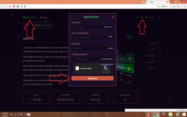 كما نعلم فالعملات الالكترونية اصبحت ذا قيمة اكبر من العملات الورقية نفسها فقد غزت السوق وهذا لما لها من مميزات اليوم سنتكلم في هذا الموضوع عن موقع لتعدين العملات و المفاجئة هو انه يعطيك قوة 100GH/s للتعدن بها فور التسجيل فيه . استراتيجية الربح جد بسيطة هي اختيار العملة و البدئ في التعدين و التنقيب عليها. ندخل إلى الموقع والذي سوف تجدون رابطة اسفل التدوينة ، سوف تجدون الموقع باللغة الروسية ، يمكنك تغيير اللغة اذا اردت الى الانجليزية او أي لغة اخرى ، ومن ثم نسجل بالطريقة التقليدية عبر الضغط على Ragistration ![]() بعد التسجيل سوف ينقلك إلى هذه الصفحة الرئيسية مثل ما تشاهدون اعاطني 100 جيجا هاش ، بعد التسجيل على يسار الصفحة توجد القائمة نضغط على Mining من اجل ندخل الى صفحة التعدين ![]() يمكنك في هذه الصفحة تعدين العملة التي تريدها ، فقط عن طريق الضغط على set power ، ومن ثم الطلوع بالموشر إلى الأعلى ، ثم الضغط مرة اخرى على set power كي يبدأ في تعدين العملة با 100 جيجا هاش التي تملكها ، ملحوظة عندما تسجل في الموقع سوف تجد كل عملة تعدن بنسبة 20% فقط اضغط على كل عملة واحفض الموشر الى صفر ما عدا العملة التي تريد تعدينها ويمكنك سحبها عند الوصول إلى الحد الأدنى وهو 1 دولار ، كما يعتمد ربحك على الجيجا هاش التي تملكها ، كل ما ارتفعت زاد الربح والذي سوف يصل الى 12 دولار كل ساعة لكن في مستويات مرتفعة ، يمكنك الحصول على الجيجا هاش بطريقتين الأولى عن طريق الشراء وكل 1 جيجا هاش ب 0.01 سنت يعني كل 100GH/S سعره 1 دولار أو يمكنك استخدام الطريقة الثانية وهي الأفضل وهي عن طريق دعوة الأصدقاء وكل صديق تدعوه تربح 5 جيجا هاش ، فقط اضغط على partners في القائمة وانسخ رابط الاحالة وانشره . الموقع جديد اغتنم الفرصة وسارع في التسجيل رابط الموقع : من هنا