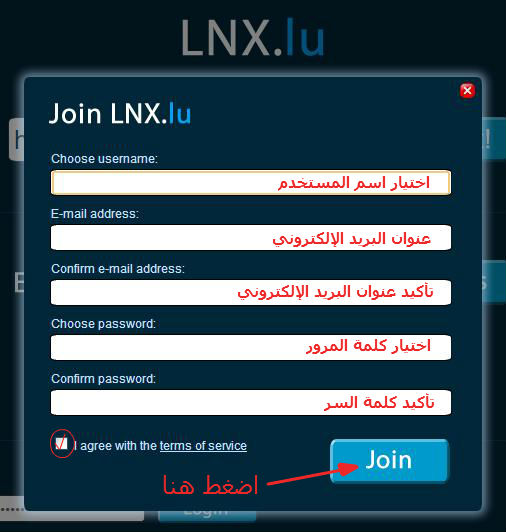 موقع LNX.lu هو أحد مواقع إختصار الروابط والتى تم إنشائها بهدف الربح من النت حيث تربح عن طريق زيارة الروابط الخاصة بك؛ حيث يتم عرض بعض الإعلانات لمدة 5 ثوانى فقط وبعدها يتم تحويل الزائر إلى الصفحة الهدف. قم بتجربة الرابط التالى لتفهم الأمر، وهو رابط سوف يقوم بتوجيهك إلى صفحة جوجل الرابط هو : https://lnx.lu/1Aiv شرح التسجيل في الشركة LNX.lu أولا أضغط على هذا الرابط للتسجيل: ثم تابع الشرح بالصور : بعد الدخول من خلال الرابط نقوم بالضغط على Join us بعد ذلك نقوم بالذهاب الى الايميل لاتمام عملية التسجيل والضغط على رابط التحقق من امتلاك الايميل