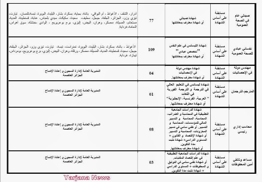 إعلان عن مسابقة توظيف بالمديرية العامة لإدارة السجون (952 منصب) 25 فيفري 2014 عدة ولايات...