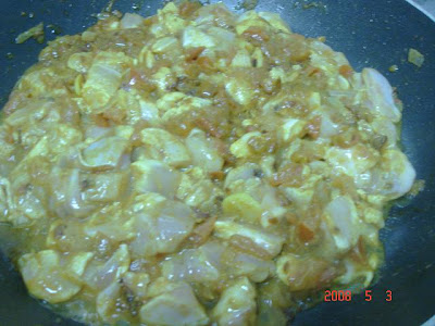 ![]() المقادير نصف دجاجه حبتين بطاطس وسط بصله حبة طماطم نصف حبه فليفله قليل من البقدونس بهارات كركم ملح وكمون ونصف حبه ماجي الطريقه نقطع البصل ونضعه على النارمع القليل من السمن ![]() ونقطع الدجاجه الى قطع صغيره مكعبات ![]() ننتظر البصل الى ان يصبح لونه ذهبيا ثم نظيف الطماطم والفيفله والبهار والكركم والملح وقطعة مكعبات ماجي ![]() وننتظر الى ان تنظج المحتويات ثم نضيف الدجاج ونتركه على نار هادئه ![]() وفي هاذهي الاثناءنقطع البطاطس اما مكعبات او شكل اصابع على حسب الرغبه ونقليه ثم نضيفه الى الدجاج ونقطع القليل من البقدونس ونضعه على الدجاج مع التقليب ونضيف عليه عصير ليمونه الشكل النهائي ![]() ونقدمه مع السلطه والخبز