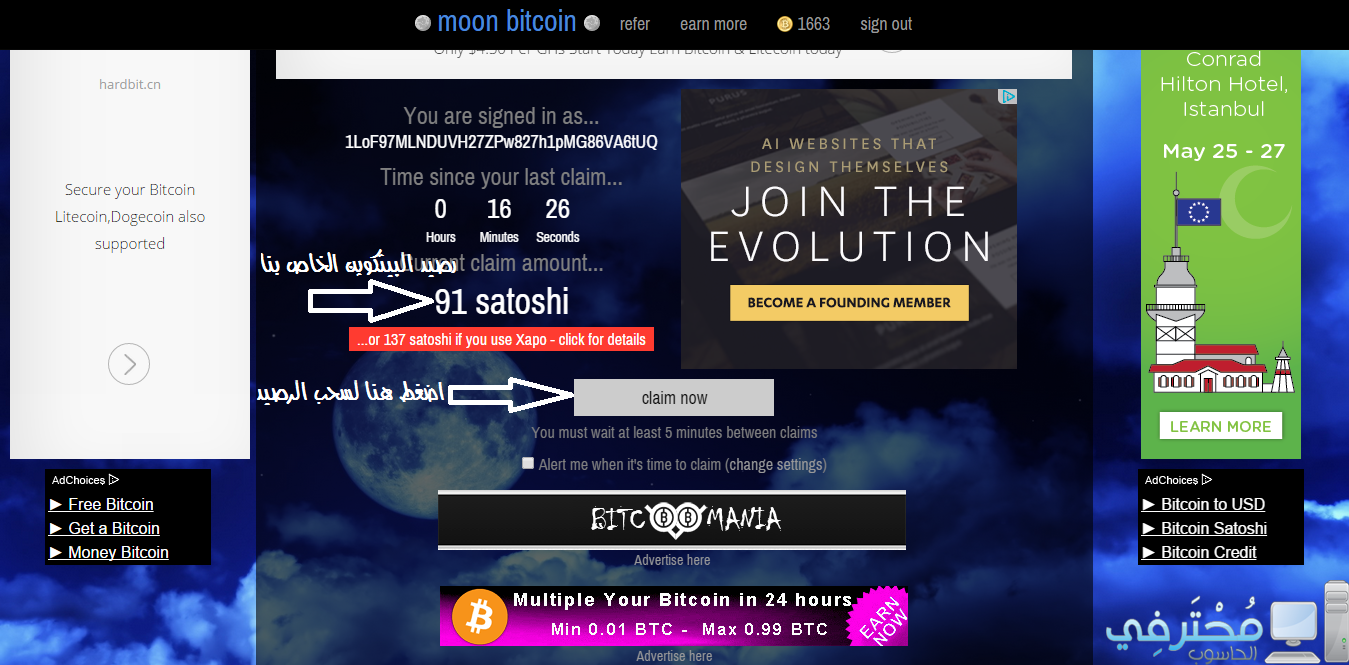 شرح موقع moonbitcoin لربح البيتكوين عن طريق ترك المتصفح مفتوح