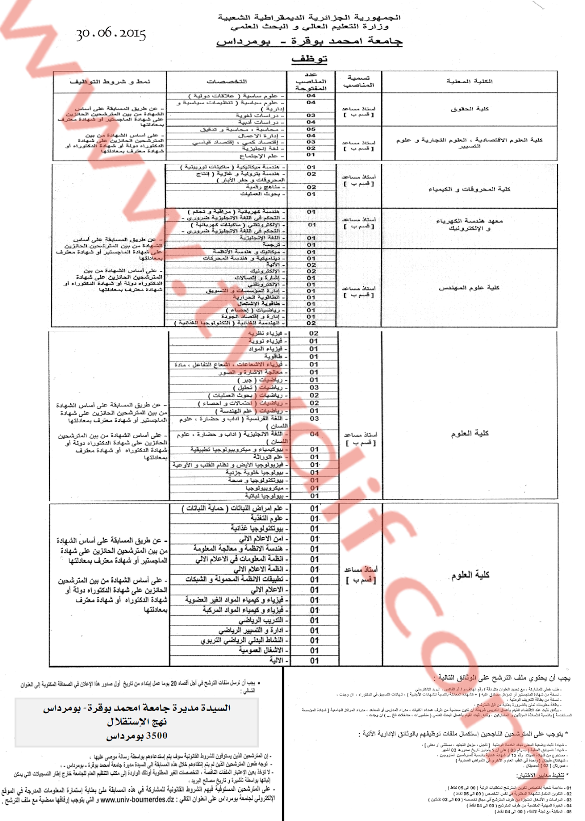 هذا هو اعلان الجريدة ، في جامعة بومرداس ظهر الاعلان في الجرائد يوم 30 جوان و في موقع الجامعة 07 جويلية |