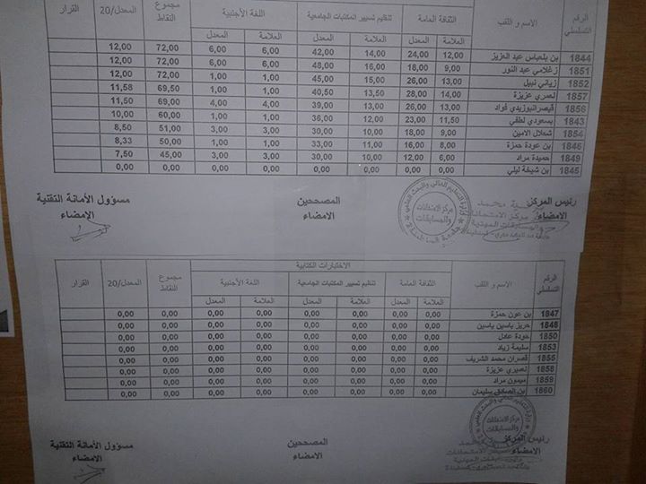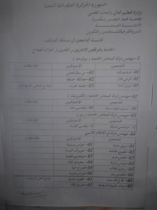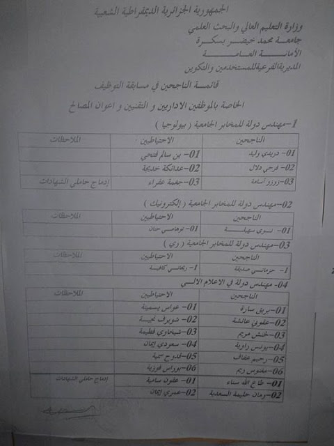 نتائج مسابقة الأسلاك المشتركة جامعة بسكرة جانفي 2016 09 جانفي 2016