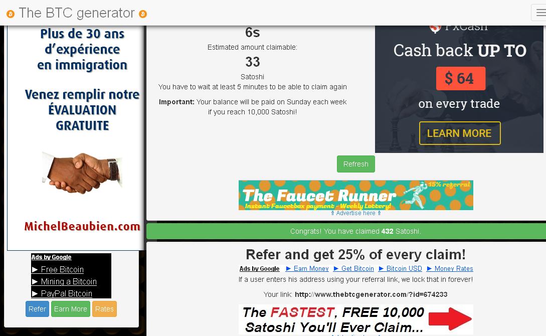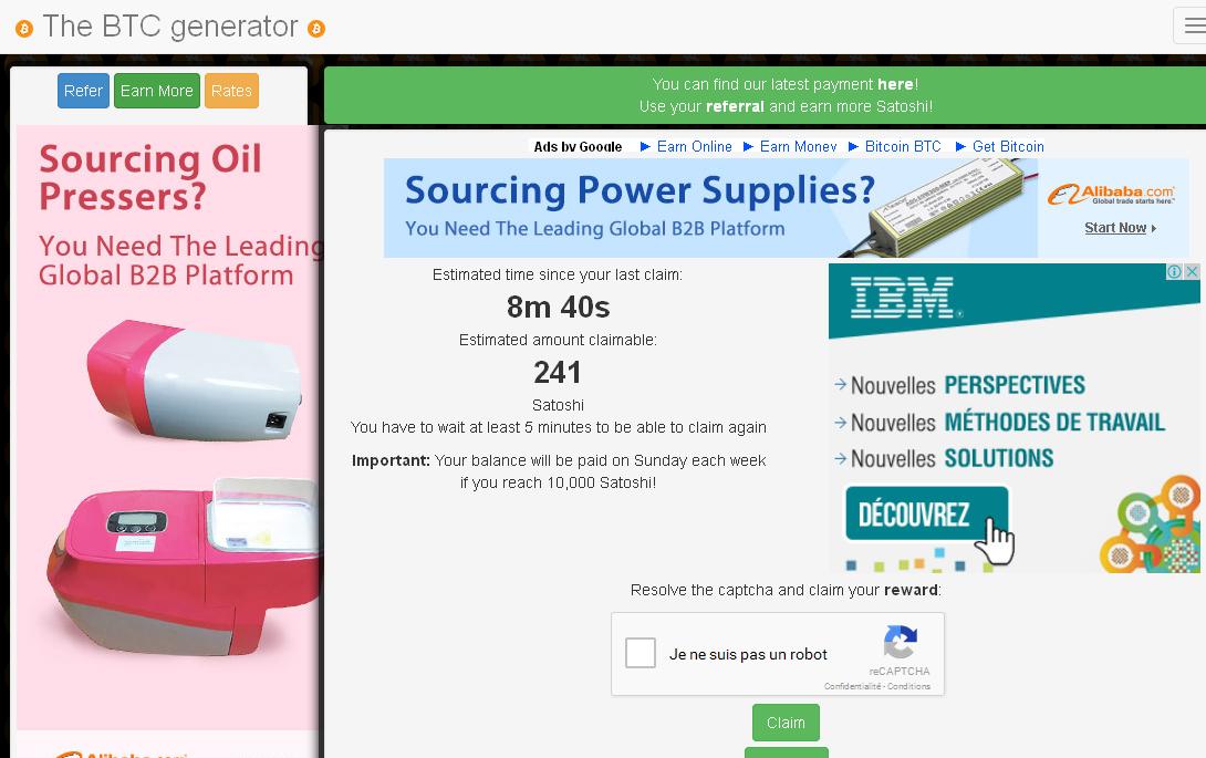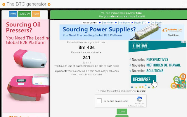 السلام عليكم عند الدخول سوف يقوم الموقع ببداية إحتساب أرباحك كل ثانية حتى ولو أغلقت المتصفح و عدت من جديد في وقت أخر فالعد لم يتوقف. يمكنك جمع ما كسبته عبرالضغط على زر Je ne suis pas un robot داخل المربع وحل Captcha من ثم زر Claimb بعد ذلك سوف يقوم الموقع بزيادة ما ربحته في Balance. عندما تصل للحد الأدنى سيقوم بالدفع تلقائيا ملاحظة أنصحكم بالسحب كلما سمحة الفرصة في حال قمة بالسحب كل 5 دقائق سوف تجمع في الساعة 2316 Satoshis بينما في حال قمت بالسحب كل ساعة سوف تجمع 503 Satoshis في حال قمة بالسحب كل 15 دقيقة سوف تجمع في الساعة 1118 Satoshis بينما في حال قمت بالسحب كل ساعة سوف تجمع 503 Satoshis في حال قمة بالسحب كل 30 دقيقة سوف تجمع في الساعة 776 Satoshis بينما في حال قمت بالسحب كل ساعة سوف تجمع 503 Satoshis رابط الموقع https://www.thebtcgenerator.com/?id=763784