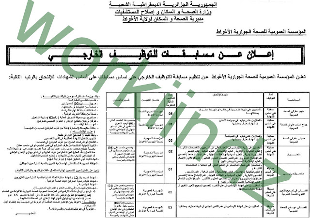 إعلان التوظيف بالمؤسسة العمومية للصحة الجوارية الأغواط نوفمبر 2016