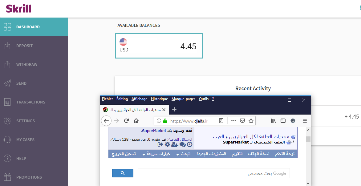المبلغ محجوز لك 4.45 دولار مقابل 800 دج على بنك سكريل |