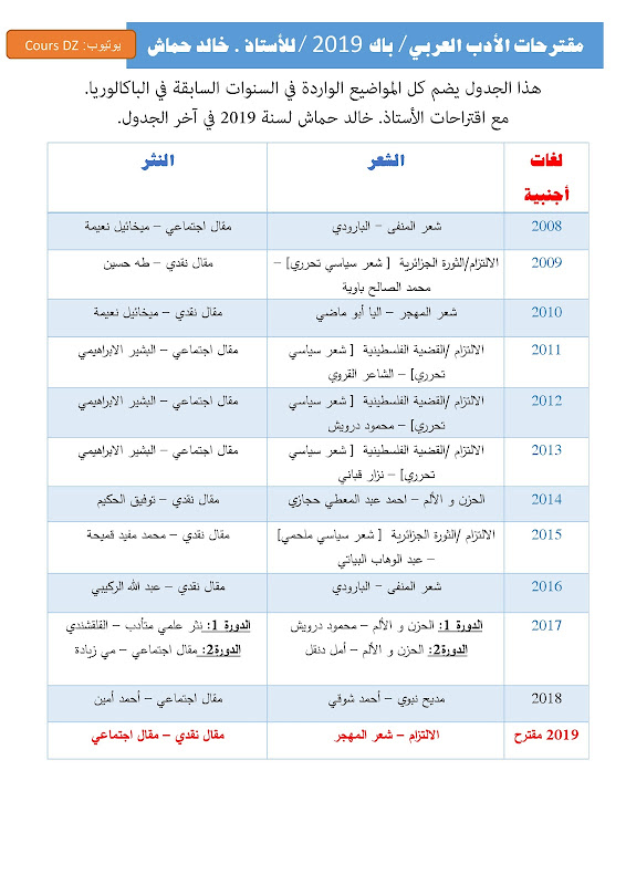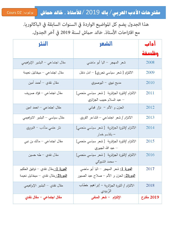 #مقترحات_لغةعربية_باك2019_آداب_وفلسفة