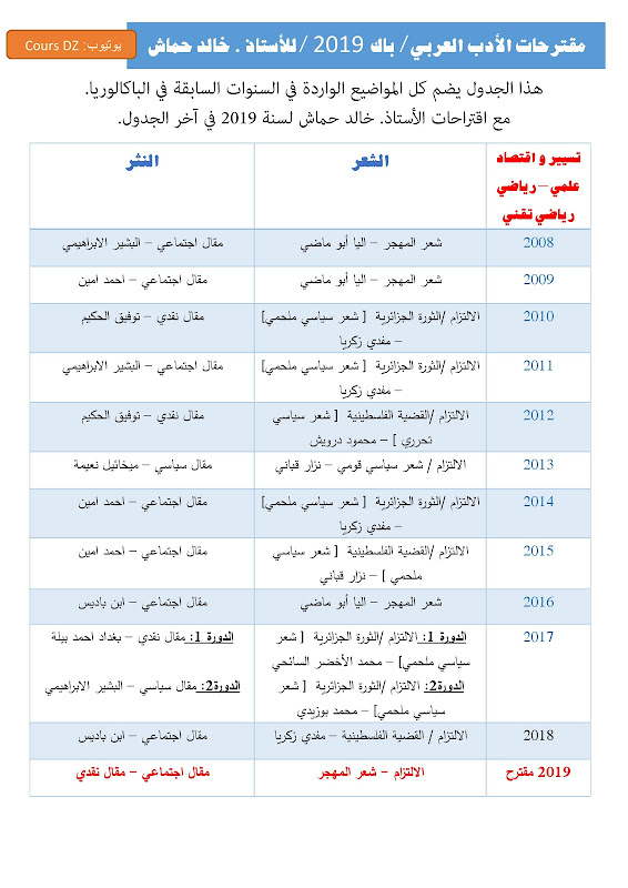 #مقترحات_لغةعربية_باك2019_تسييرواقتصاد_علمي_رياضي_ تقني