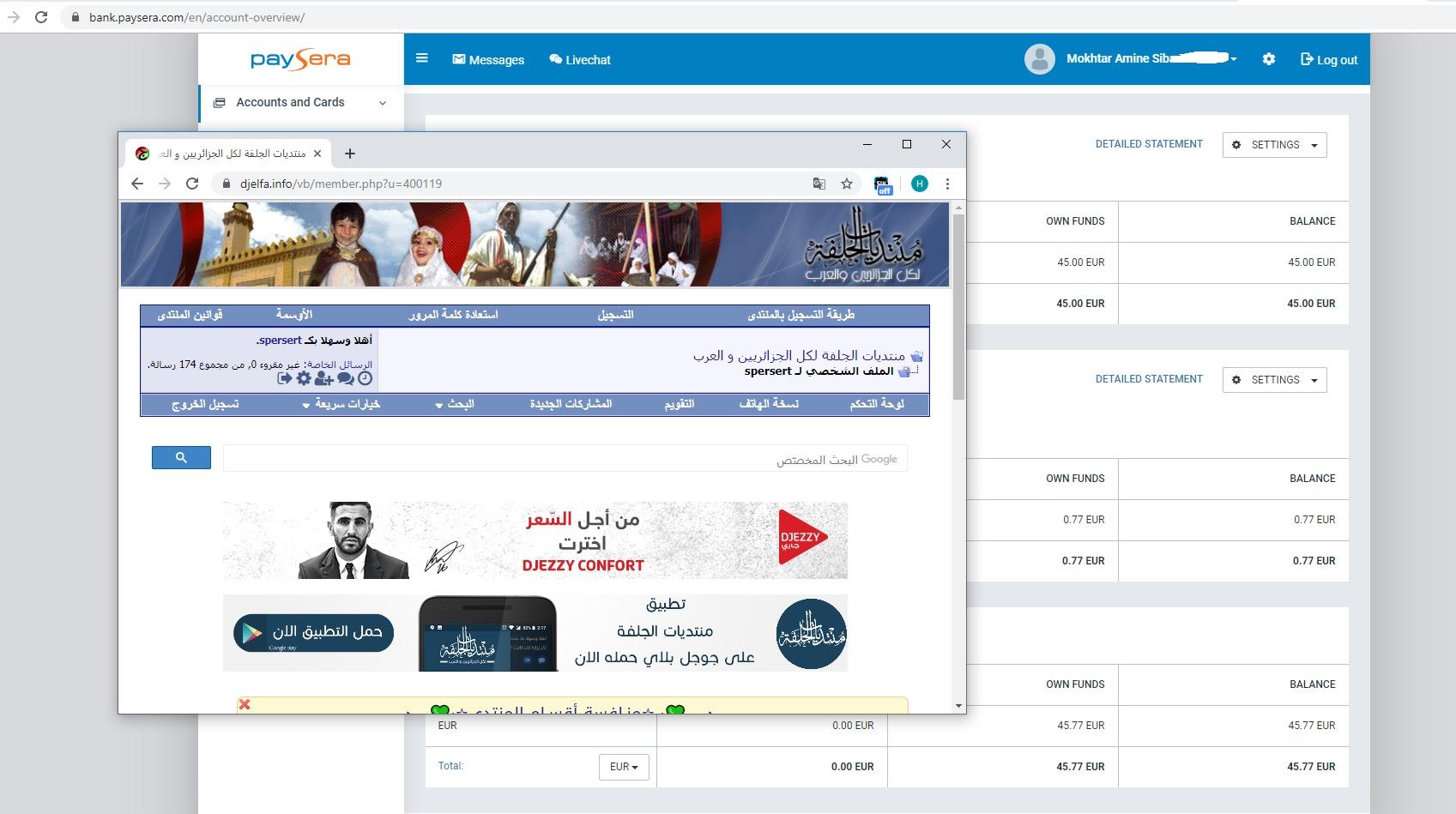 متوفر 45€ paysera للبيع مقابل سي سي بي أو بريدي موب
