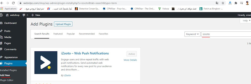 شرح الادات https://youtu.be/ps_iHuc77og خدمة الإشعارات أو التنبيهات notifications : هي عبارة عن إشعار على شكل رسالة تحمل عنوانا و مقتطف من المقالة المضافة حديثا لموقعك، تظهر على شاشة الحاسوب للمستخدم والذي قد سبق وإشترك في الخدمة ،على سبيل المثال، عندما تتلقى رسالة بريدية جديدة، فإنك تحصل على إشعار على هاتفك المحمول أو على جهازك المكتبي يفيد بوجود رسالة جديدة . وهذا النوع من التنبيهات غير مزعج للمستخدم على عكس النوافذ المنبثقة، حيث يمكن للمستخدم ضبط الإعدادت بترك التنبيهات التي يريد الحصول عليها فقط.اضافة الإشعارات التنبيهات ووردبريس بلوجر izooto في السابق، كانت التنبيهات و الإشعارات مقتصرة فقط على تطبيقات الهواتف المحمولة وتحديثات الأنظمة على الونداوز . ولكن الآن أصبحت متوفرة لمواقع الويب، وهنا نوضح بعض النقاط لما يمكن أن تفعله مثل هكذا إضافات .اضافة الإشعارات التنبيهات ووردبريس بلوجر izooto l تسمح هذه التنبيهات من خلال المتصفح بإعلام المستخدمين بالمحتوى الجديد. بمساعدة التنبيهات، لا يحتاج المشترك بالإضافة إلى زيارة موقعك لمعرفة ما إذا تم نشر محتوى جديد أم لا. فبكل بساطة سيحصل على تنبيه فور إضافتك لمحتوى جديد على موقعك. 2 يمكن للمشتركين إلغاء الاشتراك بالتنبيهات. وذلك على عكس النوافذ المنبثقة يمكن للمستخدمين اختيار ما إذا كانوا يريدون تلقي إشعارات من مواقعهم المفضلة أو إلغائه من خلال الإعدادات. 3 تتطلب التنبيهات اهتماما أقل من رسائل البريد الإلكتروني. عندما يتلقى المستخدم رسالة عبر البريد الإلكتروني، عليه الدخول إلى بريده وقراءة النص ومن ثم الدخول إلى الموقع. بينما الإشعارات أو التنبيهات تبين له عنوان المحتوى مع مقتطف منه و حتى صورة للموضوع ،ويمكنه بنقرة واحدة المرور مباشرتا إلى رابط المحتوى على الموقع. يوجد على منصة ووردبرس العديد من الإضافات والتي تقوم بهذه الخدمة . وفي هذه المقالة إخترنا شرح الإضافة Izooto . والتي أنا شخصيا أستعملها في إرسال الإشعارات إلى مشتركي الموقع . وتجدر الإشارة إلى أن العدد الكبير من الإشعارت و التنبيهات في اليوم الواحد، يمكن أن يكون له نتيجة عكسية تمام، حيث يمكن أن يؤدي ذلك إلى نفور المشترك وإلغاء الإشتراكه، وسيكون من الصعب جدا أن يشترك مرة أخرى. وفي حال عدم معرفتك بمنصة ووردبرس أو بلوجر ، أو عدم امتلاكك موقعا إلكترونيا يعمل على احد هذين المنصتين الشهيرتين والمجانيتين تماما، يمكنك الاطلاع على هذه المقالات : خطوات إعداد هذه الإضافة Izooto . الخطوة الأولى: تثبيت إضافة Izooto : من القائمة الرئيسية لمنصة الووردبرس اختر إضافات ثم أضف جديدا . وفي مربع البحث اكتب Izooto ، وعند ظهور الإضافة قم بتثبيتها ومن ثم تفعيلها. يمكنك متابعة هذه المقالة حول طرق تركيب الاضافات على الوردبريس للمبتدئين . بالنسبة لمستعملي بلوجر تابع الخطوة الموالية . الخطوة الثانية : إنشاء حساب : بالنسبة لمستعملي ووردبريس . بعد ذلك يمكنك مشاهدة علامة تبويب خاصة بالإضافة في القائمة الرئيسة. الآن نحتاج الذهاب إلى موقع الإضافة إتمام خطوات التسجيل. بالضغك على Activate Izooto اضافة الإشعارات التنبيهات تمتاز هذه الإضافة بتوفر لوحة تحكم للإدارة خاصة بها . مع إمكانية متابعة كل الإحصائيات حول الإشعارات المرسلة مع عدد المشتركين على الجوال و الحواسيب المكتبية مع بلدانهم وكذلك عدد المشتركين لكل متصفح . رابط https://www.izooto.com