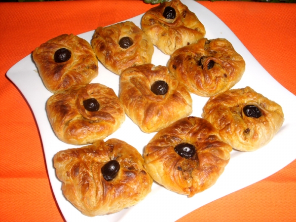 عليكم نوع من المملحات الجميلة والتي تزين بها سفرة رمضان المقادير المفروم ممكن استعمال العجينة المورقة الخاصة بالملفوي لسرعة او ضيق الوقت نحتاج مقادير العجينة 500غ دقيق ابيض ممتاز ملح و رشة من الخميرة الحشوة كوب و نصف لحم مفروم 3 بصلات مفرومة 1 حبة فلفل حلو لون اصفر 1 حبة فلفل ايضا حلو احمر 100غ من زيتون اسود مجروش ملح ابزار كمون مدقوق ببريكا طريقة التحضير اولا نعجن العجينة عادية و تدلكجيدا حتى تصير لينة تترك ترتاح لسهولة الاستعمال بعدين تشكل كورات صغيرة الحجم و نتركها ايضا ترتاح قليلا حوالي 15 د نحضر الحشوة بطريقة عادية جدا يحمص البصل جيدا و نضيف اللحم المفروم و توابل حتى تجهز الحشوة حوالي 8 الى 10 د بعدين تترك تبرد تذاب قليل من الزبدة و تخلط مع الزيت ناخذ اول كروة من العجين تبسط برشات من زيت و زبدة المذابين مع بعض و بعدين نبسط كورة ثانية و نضعهم على بعض 3 طبقات و يكون شكل مربع عنا نضع الحشوة داخل العجين و نجمع الجوانب و نضع زيتونة سوداء مع رشة زيت و زبدة و نصفها على صينية الفرن المدهونة و هيك حتى يخلص التحضير كله و بعدين تطهى في فرن متوسط و تقدم دافئة و صحتين و عافية