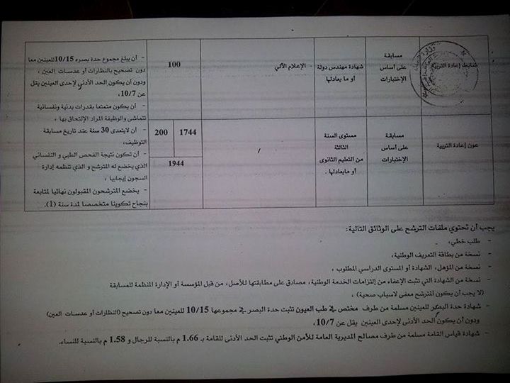 | ممكن, مسابقة, السجون, ادارة, اعوان, ومتطلبات, ضباط |