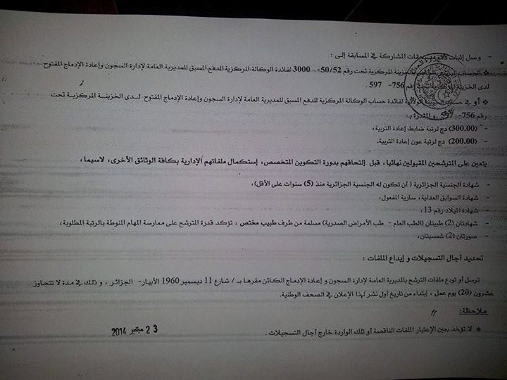 السلام عليكم ممكن ملف مسابقة التوضيف في ادارة السجون كضباط او مساعدون واين يتم دفع الملف؟