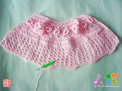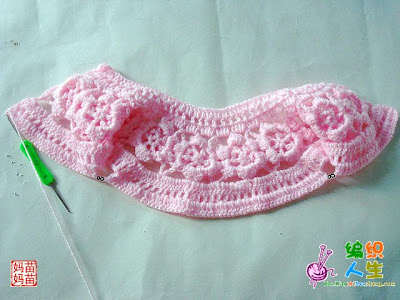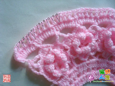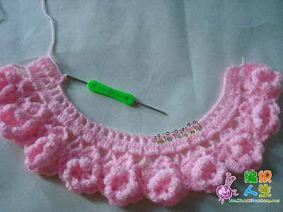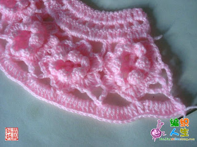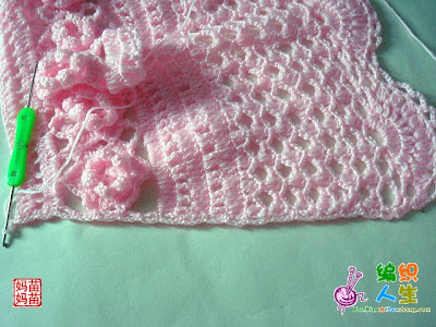 ![]() ![]() نبدا العمل بشغل الوردات الوردة مكونة من 6بتلات وطبقتين هكذا ![]() ![]() نعمل عدد الوردات حسب مقاس محيط صدر البنت نشبك الوردات مع بعضها كما موضح ![]() ![]() هذا مقاس بيبي ![]() هنا نعمل سلسلة لربط الورد نبدا بالبتلة الجانبية ونعمل سلسلة من5غرزثم غرزةحشو في البتلة العليا ثم عمود بلفةاو لفتين في البتلة الجانبية للوردة الأولى والبتلة الجانبية للوردة الثانية ثم نصعد ب3سلسلة ثم غرزة حشو عند راس البتلة لي فوق ثم 5سلسلة ثم 2عمود بلفة أو لفتين من نفس النقطة في البتلتين الجانبيتين لفي الوردتين وهكذا الى أخر السطر ![]() نلاحظ بان الشغل أخد شكل دائري نلف الشغل ونعمل منزلقة ثم 3سلسلة بمثابةعمود ثم 3أعمدة في مجموعة السلسلة الاولى المكونةمن5 غرز ثم نمر للمجموعة الثانية ونعمل 4 أعمدةوهكذا الى اخر مجموعة يتبع