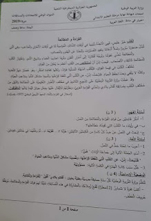 مواضيع شهادة التعليم الابتدائي 2019 مع التصحيح النموذجي