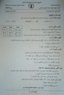 موضوع الرياضيات شهادة التعليم الابتدائي 2019 مع التصحيح المقدم مني لكم |