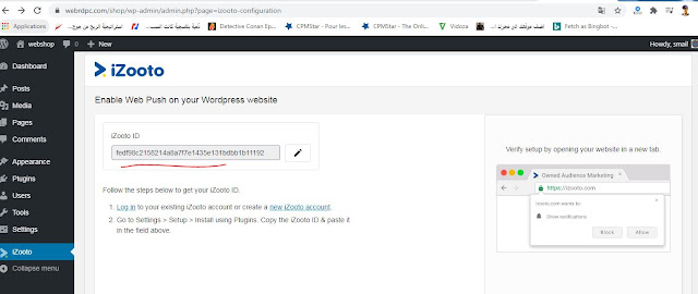 شرح الادات https://youtu.be/ps_iHuc77og خدمة الإشعارات أو التنبيهات notifications : هي عبارة عن إشعار على شكل رسالة تحمل عنوانا و مقتطف من المقالة المضافة حديثا لموقعك، تظهر على شاشة الحاسوب للمستخدم والذي قد سبق وإشترك في الخدمة ،على سبيل المثال، عندما تتلقى رسالة بريدية جديدة، فإنك تحصل على إشعار على هاتفك المحمول أو على جهازك المكتبي يفيد بوجود رسالة جديدة . وهذا النوع من التنبيهات غير مزعج للمستخدم على عكس النوافذ المنبثقة، حيث يمكن للمستخدم ضبط الإعدادت بترك التنبيهات التي يريد الحصول عليها فقط.اضافة الإشعارات التنبيهات ووردبريس بلوجر izooto في السابق، كانت التنبيهات و الإشعارات مقتصرة فقط على تطبيقات الهواتف المحمولة وتحديثات الأنظمة على الونداوز . ولكن الآن أصبحت متوفرة لمواقع الويب، وهنا نوضح بعض النقاط لما يمكن أن تفعله مثل هكذا إضافات .اضافة الإشعارات التنبيهات ووردبريس بلوجر izooto l تسمح هذه التنبيهات من خلال المتصفح بإعلام المستخدمين بالمحتوى الجديد. بمساعدة التنبيهات، لا يحتاج المشترك بالإضافة إلى زيارة موقعك لمعرفة ما إذا تم نشر محتوى جديد أم لا. فبكل بساطة سيحصل على تنبيه فور إضافتك لمحتوى جديد على موقعك. 2 يمكن للمشتركين إلغاء الاشتراك بالتنبيهات. وذلك على عكس النوافذ المنبثقة يمكن للمستخدمين اختيار ما إذا كانوا يريدون تلقي إشعارات من مواقعهم المفضلة أو إلغائه من خلال الإعدادات. 3 تتطلب التنبيهات اهتماما أقل من رسائل البريد الإلكتروني. عندما يتلقى المستخدم رسالة عبر البريد الإلكتروني، عليه الدخول إلى بريده وقراءة النص ومن ثم الدخول إلى الموقع. بينما الإشعارات أو التنبيهات تبين له عنوان المحتوى مع مقتطف منه و حتى صورة للموضوع ،ويمكنه بنقرة واحدة المرور مباشرتا إلى رابط المحتوى على الموقع. يوجد على منصة ووردبرس العديد من الإضافات والتي تقوم بهذه الخدمة . وفي هذه المقالة إخترنا شرح الإضافة Izooto . والتي أنا شخصيا أستعملها في إرسال الإشعارات إلى مشتركي الموقع . وتجدر الإشارة إلى أن العدد الكبير من الإشعارت و التنبيهات في اليوم الواحد، يمكن أن يكون له نتيجة عكسية تمام، حيث يمكن أن يؤدي ذلك إلى نفور المشترك وإلغاء الإشتراكه، وسيكون من الصعب جدا أن يشترك مرة أخرى. وفي حال عدم معرفتك بمنصة ووردبرس أو بلوجر ، أو عدم امتلاكك موقعا إلكترونيا يعمل على احد هذين المنصتين الشهيرتين والمجانيتين تماما، يمكنك الاطلاع على هذه المقالات : خطوات إعداد هذه الإضافة Izooto . الخطوة الأولى: تثبيت إضافة Izooto : من القائمة الرئيسية لمنصة الووردبرس اختر إضافات ثم أضف جديدا . وفي مربع البحث اكتب Izooto ، وعند ظهور الإضافة قم بتثبيتها ومن ثم تفعيلها. يمكنك متابعة هذه المقالة حول طرق تركيب الاضافات على الوردبريس للمبتدئين . بالنسبة لمستعملي بلوجر تابع الخطوة الموالية . الخطوة الثانية : إنشاء حساب : بالنسبة لمستعملي ووردبريس . بعد ذلك يمكنك مشاهدة علامة تبويب خاصة بالإضافة في القائمة الرئيسة. الآن نحتاج الذهاب إلى موقع الإضافة إتمام خطوات التسجيل. بالضغك على Activate Izooto اضافة الإشعارات التنبيهات تمتاز هذه الإضافة بتوفر لوحة تحكم للإدارة خاصة بها . مع إمكانية متابعة كل الإحصائيات حول الإشعارات المرسلة مع عدد المشتركين على الجوال و الحواسيب المكتبية مع بلدانهم وكذلك عدد المشتركين لكل متصفح . رابط https://www.izooto.com