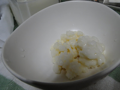 8- بعد ذلك نغسل الفطرجيدا وهو في المصفاة دون ان نلمسه ونعيده الى كمية جديدة من الحليب ليتكون لبن جديد يسقى للمريضاو لاي مريض آخر .