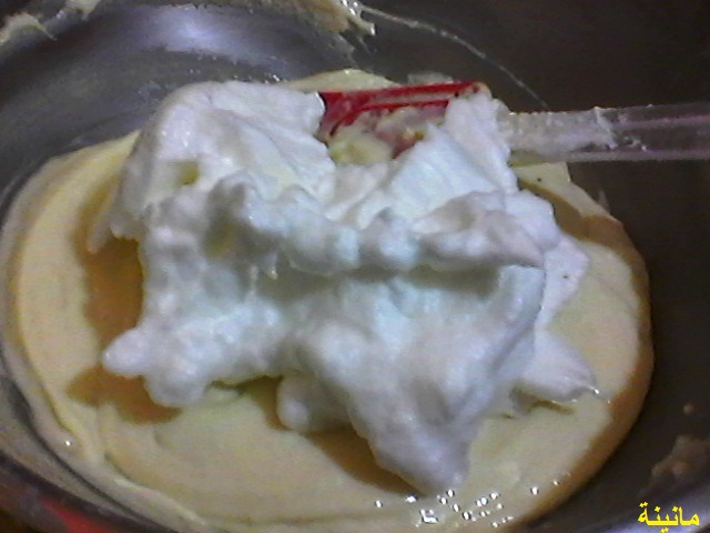 بسم الله الرحمن الرحيم والصلاة على اشرف المرسلين السلام عليكم كيكة البرتقال ![]() المقادير: 1. 7حبات بيض حجم كبير متوسط 2. 160غ سكر 3. 2خمارة الوردة الذهبية 4. 110 عصير البرتقال 5. قرصة ملح 6. مبشور برتقالة 7. 100 غ زيت 8. 2 ملاعق اكل نشا 9. 230 غ فرينة التزيين: 1. فندون 2. شكولاطة سوداء 3.كرز مجفف طريقة التحضير: 1. ناخد بياض 6 حبات بيض + 1 حبة بيض كاملة + قرصة ملح + 80 غ سكر نطلعهم بالخلاط الكهروبائي . 2. نخلط صفار 6 حبات بيض + 80 غ سكرخلط جيد بالخلاط الكهروبائي حتى يصبح الخليط ابيض 3. + فانلا + مبشور وعصير البرتقال . 4. + الزيت بطريقة عمل المايونيز . 5. + النشا . 6. + الفرينة على مراحل والخمارة مع المرحلة الاخيرة من الفرينة ونخلط باستعمال ملعقة . 7. نخلط بياض البيض المخفوق مع الخليط من الاعلى للاسفل . 8. نضع الخليط في المول وندخله الفرن . 9. بعد ما تنضج الكيكة نتركها تبرد و نزينها بالفندون و بالشكولاطة المدوبة في حمام مائي .