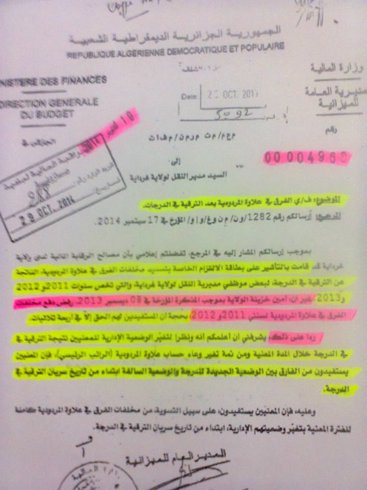 جاءته ترقية في الدرجات ابتداء من اول يوم الشهر القاد م اي 01اوت 2015 اصبحت درجته 5