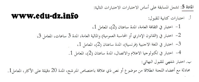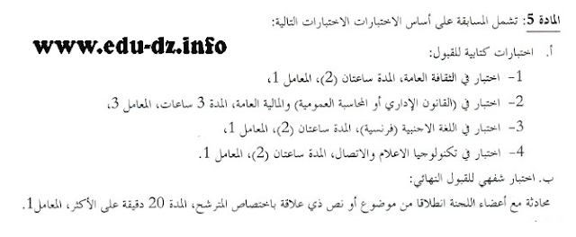 ملاحظة : يختار المترشح مابين القانون الاداري و المحاسبة العامة في حين المالية العامة اجباري .