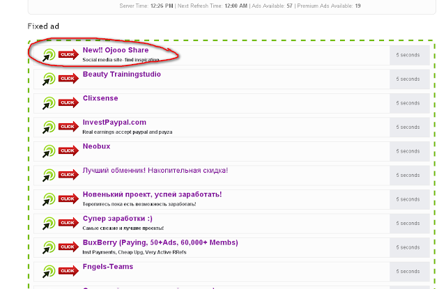 4 - موقع ojooo كلما تضغط على الاعلانات اكثر يعطيك المزيد من اعلانات لتصغط عليهافي اليوم الثاني فقط اتبع الاستراتجية