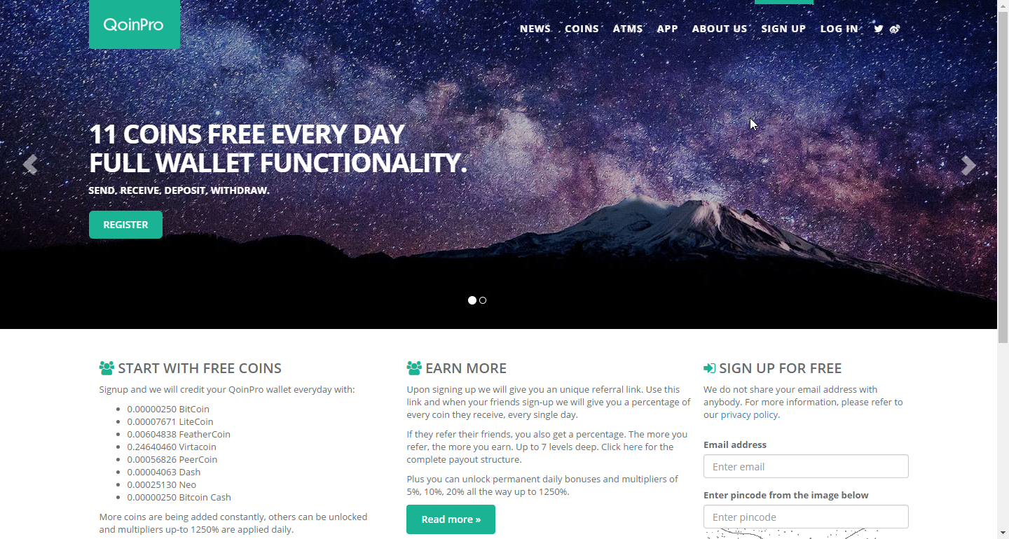 موقع qoinpro للحصول على البيتكوين و عملات فرعية أخرى مجانا كل يوم