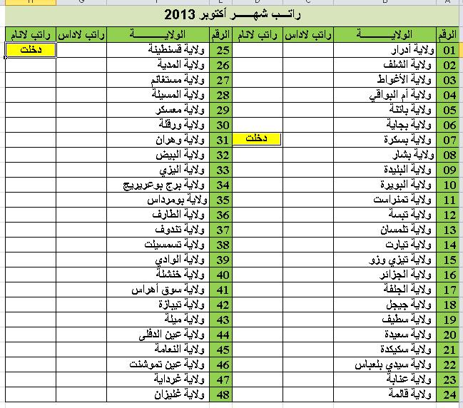 أخبار دخول راتب لانام + لاداس شهر أكتوبر 2013 كل الولايات