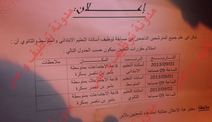 هام جدا للناجحين في مسابقة التعليم بسكرة