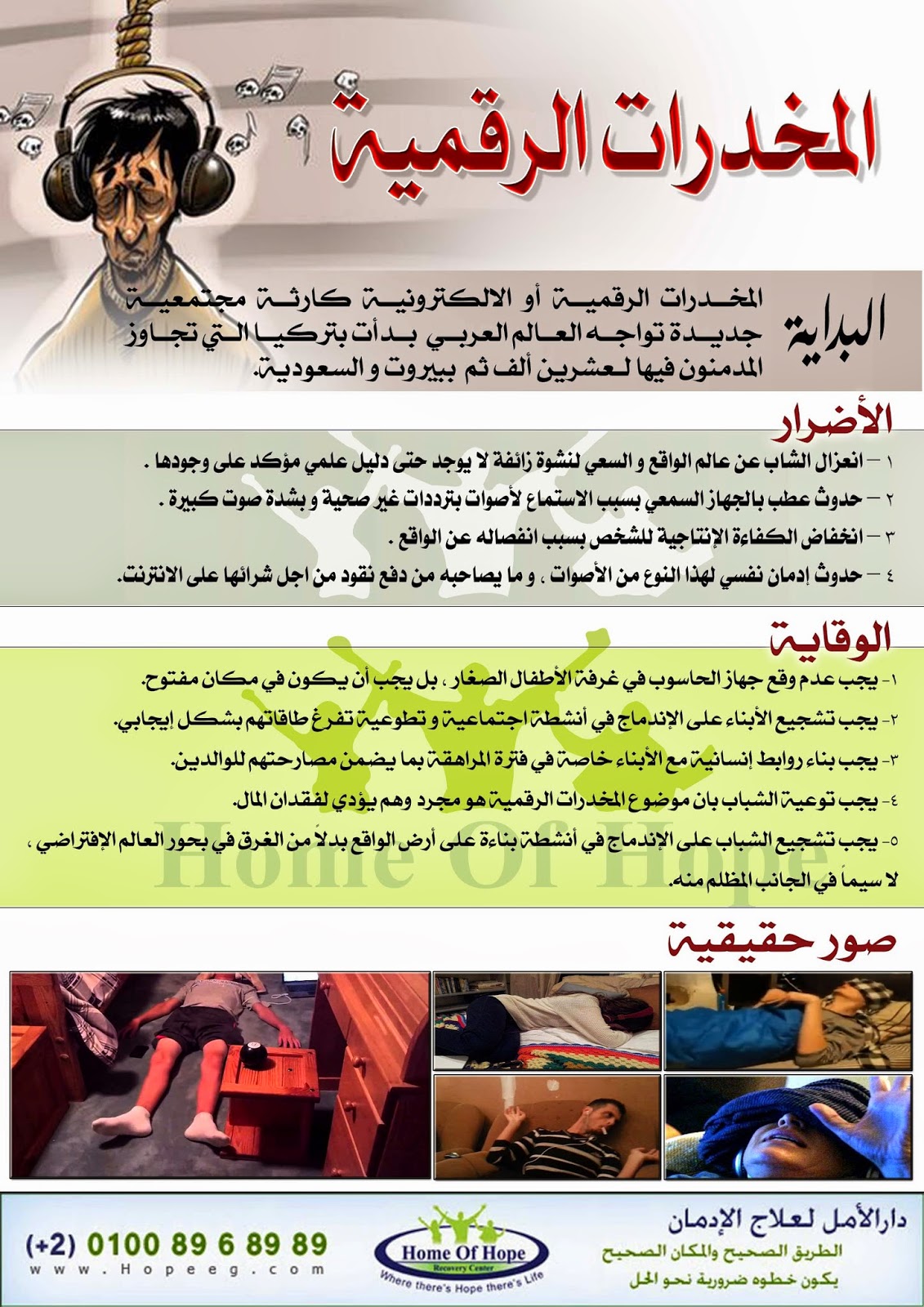 ![]() المخدرات الرقمية "الالكترونية" المخدرات الرقمية هى نوع خاص من الموسيقى ذات الترددات المميزة و التي يعتقد أن لها تأثير على درجة نشاط المخ و استقباله للألم و التحكم فى الحالة النفسية للمستمع . الاسماء الشائعة للمخدرات الالكترونية «عيش الجو»، «حلق في السماء»، «المتعة في الموسيقى»، و»الطيور المهاجرة».. ليست أسماء أفلام أو مسلسلات، ولكنها أسماء مختلفة لما عُرف بـ "المخدرات الالكترونية "، التي بدأت في التداول عالميا، وعرفتها بعض المجتمعات العربية في الآونة الأخيرة بين الشباب والفتيات، فهي لا تحتاج سوى جهاز كمبيوتر أو هاتف ذكي، وانزوي به في غرفتك، واقفل الأبواب والنوافذ، وتمدد على سريرك، ثم ضع عصابة على عينيك، وانطلق في رحلة الضياع. يستمع الشباب للمخدرات الالكترونية عبر مواقع الإنترنت، ليصبح متعاطيها مدمنا أو مهووسا ويدخل لمنطقة مظلمة بسسب تأثيره على المخ , ورغم تداول هذا النوع من الموسيقى المخدرة في أوروبا قبل نحو 5 سنوات، إلا أن عالمنا العربي لم يكن يعرفها قبل أسابيع قليلة، بعد أن حذرت منها لبنان، بعد انتشارها بين شبابها، ثم ظهرت حالات في الإمارات، ومؤخرا دب الذعر في أوساط السعوديين بعد أنباء متضاربة ترددت حول أول وفاة في السعودية بسبب هذه مخدرات الكترونية عبر الانترنت ![]() خطورة المخدرات الرقمية أصبح تعاطي تلك «المخدرات الرقمية»، كما يطلق عليها يتم عبر الشبكة العنكبوتية، وخطورتها تكمن بكونها في متناول اليد وفي أي وقت، والسعر يبدأ بدولار ويرتفع حسب نوع درجة الإدمان عبر مواقع عالمية متخصصة تسوق لها بطرق عدة، وباحترافية تواكب التطور المعرفي للتقنية، التي يمتلكها الجيل الحالي. حروب تقنية عبر الشبكة المعلوماتية ويصف خبراء التقنية تلك المخدرات الجديدة بأنها عبارة عن ملفات صوتية تحتوي على نغمات أحادية أو ثنائية يستمع إليها المستهلك فتصل إلى الدماغ عن طريق موجات تتلاعب بكهرباء المخ وتجعله في حالة من الخدر شبيهة بالمخدرات الحقيقية.. وذهب بعض اطباء علاج الادمان ان المخدرات الرقمية عبارة عن : نغمات صوتية تحتوي على ذبذبات يستمع إليها المستخدم فتعطي تأثيرا أشبه بالتنويم المغناطيسي، ليحاكي تأثير الهيروين والكوكايين وغيرهما من المخدرات الكيميائية، بل وتصل إلى حالات انتشاء وهلوسة كالتي تصاحب التعاطي. ومع تطور العالم وانغماسه في عالم التقنية إلى حد بعيد، وتحقق الدور المتعاظم للشبكة العنكبوتية، بدأت بعض المنظمات في ترويج كل شيء خلالها، ومواكبة هذا التطور التقني بتطور مماثل ولكنه سلبي، فيما شبهه البعض بالحرب الكونية التقنية، واعتبره آخرون ضمن ما يعرف بحروب الجيل الرابع، وخاصة بعد أن ظهرت مؤخرًا تلك المواقع التي تبتكر وتبث هذا النوع من التقنية الضارة، مستغلة النمو المتزايد للتقنيات الحديثة بما لا يمكن السيطرة عليه، ومن هنا بدأ الترويج لهذا النوع من الموسيقى المخدرة، أو ما يعرف بالمخدرات الرقمية عبر مواقع الإنترنت، حيث قامت تلك المواقع بتحصين نفسها قانونا بوضع تحذير عبر موقعها كتبت فيه «محظور استخدامها لمن يعانون من أمراض نفسية أو عقلية، أو من هم دون الثامنة عشرة بدون إذن والديهما». تعريف اخر للمخدرات الرقمية أن المخدرات الرقمية مؤثرات صوتية، وهي عبارة عن نغمات موسيقية معينة ذات ذبذبات ثنائية لها مسميات متعددة وتوجد في مواقع إلكترونية مختلفة من سنين طويلة ووجدت في الأصل ضمن مجال العلاج النفسي وتطبق في بعض المراكز النفسية في الدول الغربية، تحت مسمى العلاج بالموسيقى وتستخدم في نطاق ضيق لدى مدمني المخدرات للبحث عن مزيد من النشوة. اضرار المخدرات الرقمية على المخ لاشك أنها تؤثر على المخ ، ولكن كيفية ومدى تأثير هذه النغمات وهذه الأصوات على الدماغ البشري يخضع للدراسة، وهناك لجنة شكلت لدراسة مدى تأثير وخطورة هذه المؤثرات الصوتية على مخ الإنسان. ![]() هل تؤدى المخدرات الالكترونية الى الادمان هذه الموسيقى والنغمات لا تؤدي إلى الإدمان ولكن يستخدمها بعض مدمني ا