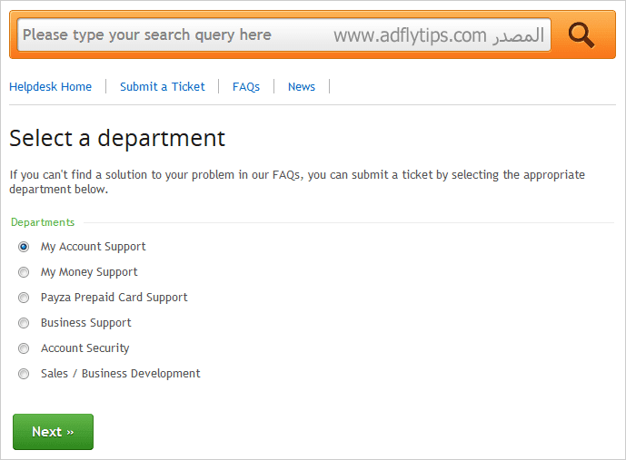 • سوف تنتقل إلى نافذة إختيار قسم الدعم الفني Select a department، ومنها إختر My Account Support