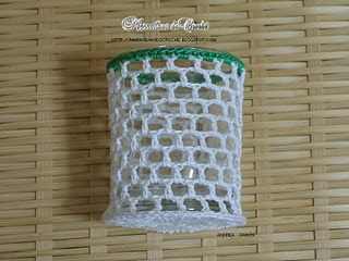 تغليف شمعدان زجاجي عادي بالكروشي نعمل قاعده دائريه بحجم قاعده القدح ثم نعمل فوق العيون عمود +2غرزه ونستمر لنهايه الطول اللى نراه مناسب آخر تعديل amani32 2014-01-08 في 12:26.