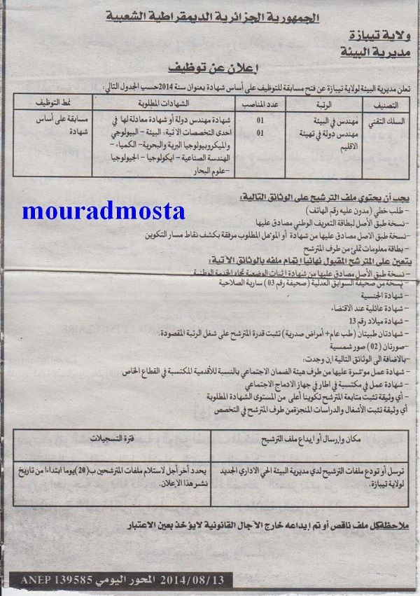 إعلانات التوظيف الصادرة في الوظيفة العمومية الصادرة في الجرائد اليومية الخاصة بشهر أوت 2014