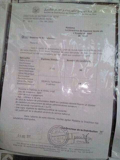 اعلان توظيف في شركة توزيع الكهرباء و الغاز ”سونلغاز” ديسمبر 2016