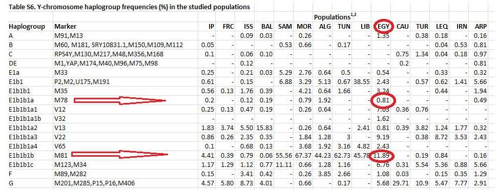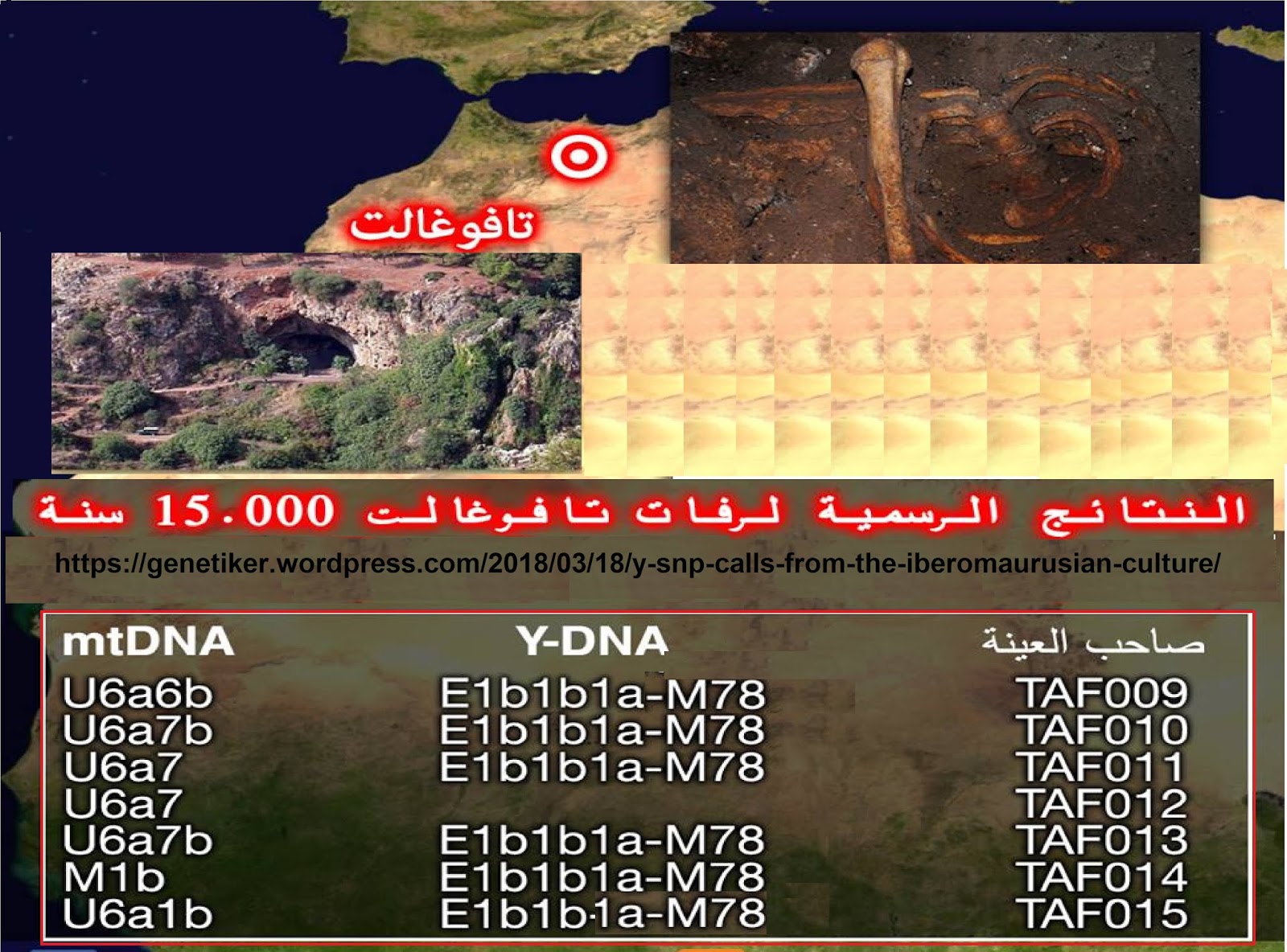 فضح هذه الاكذوبة : العلماء المشاركين في الدراسة افلبهم اجانب فلما تخيب توقعاتهم هل هم امازيغ ؟ اولا لا حظو ا اخوتي القراء كيف يحاول صاحب الموضوع التلاعب بالالفاظ للايحاء ان العلماء كانوا يبحثون عن تحورات من النوع EM81 وهذا كذب فلا احد من العلماء يهمه ما ذا سيجد من تحورات بقدر ما يهمه الوصول الى نتائج رسمية و دقيقة ثانيا بقول الكذاب ان تحورات رفاة تافوغالت التي عمرها اكثر من 15 الف سنة خرجت على تحور EM78 وان اغلبية حامليها خارج شمال افريقيا فضح هذه الاكذوبة : للعلم التحور EM78 هو تحور شمال افريقي خالص وليس من خارج افريقيا او من شرقها او جنوبها الدليل : قبل ذلك انظر في الصورة التالية توضيح لتلك النتائج بحيث تجدون النتائج الرسمية لتحوراتهم من جهة الاباء (Y-DNA) وايضا تحوراتهم الجينية من جهة الام(MT-DNA) ![]() حيث تم الاعلان الرسمي على تحوراتهم في شهر مارس 2018م على الرابط التالي: https://genetiker.wordpress.com/2018...usian-culture/ التحور EM78 هو نحور شمال افريقي مغاربي : تتاكدون من هذه المعلومة من خلال دراسة (Trombetta et al 2015) والشجرة الجينية للسلالة EM78 التي اصبحت الدراسة الرسمية لاصل منشا التحور EM78 الذي هو شمال افريقي مغاربي انظر مقتبس من الشجرة للتحور EM78 من دراسة (TROMBETTA) فهذه ا الدراسة لاخيرة تعتبر EM78 سلالة شمال افريقية 75 بالمئة على الاقل وهي معلمة باللون البنفسجي كلون يمثل شمال افريقيا كما هو موضح في الصورة السابقة اللون الأصفر داخل السلالة EM78 يمثل أوروبا و اللون االبني شرق أفريقيا، ونلاحظ ان السلالات الفرعية لـ: M78 مثل: E-V22 و E-V13 هي أوروبية بحسب دراسة Trombetta et al 2015 مشارة باللون الأصفر. بينما التحورات التحتية الاخرى للسلالة EM78 هي تحورات شمال افريقية خالصة والتي يحملها بعض الامازيغ ملاحظة اللون البنفسجي الذي يرمز الى شمال افريقيا (لا تدخل فيه مصر) أما اللون البنفسجي الشمال أفريقي في الأقراص المعروضة داخل E-V68، في دراسة (طرامبيطا 2015) فهو لا يحتسب الدولة المصرية و السبب بكل بساطة هي قاعدة بيانات دراسة Badro et al 2013 واللتي أظهرت تفوق كبير لحضور السلالة E-M78 في دول المغرب الكبير مقابل دولة مصر خصوصا عبر نسبة المعدلات العامة كما هو موضح اسفله: دراسة Badro et al 2013 ![]() رابط الدراسة : https://journals.plos.org/plosone/ar...l.pone.0054616 يوضح الجدول السابق ترتيب تواجد السلالة EM78 في شمال افريقيا: الجزائر تأتي متقدمة على مصر بنسبة 1.92 مقابل 0.81 لمصر تليها المغرب بفارق بسيط للغاية بحوالي 0.79، وهنا يتضح خرافة أقران المركر أو الهابلوغروب E-M78 بمصر كما يدعيه البعض في ظل تركز هذا الهابلوغروب في غرب المتوسط وغيابه في شرقه. فالدولة المصرية بها تقريبا نسبة 12% للسلالة الأمازيغية E-M81، هذا بدون أحتساب كل فروع E-Z827 في مصر وهي سلالة أمازيغية ايضا ليصل المجموع لحدود 18%. اما التحور EV22 الذي نسبته لدى المصريين 9.19 بالمية كما هو مبين في الجدول السابق وكما هو معلوم فأن السلالة E-V22 لا تعتبر سلالة مصرية وفق أخر التحديثات المشجراتية ل ISOGG بالأضافة لدراسةTrombetta et al 2015 إلصاق السلالة EM78 وخاصة التحور E-V22 بمصر وبشمال شرق افريقيا لم يعد مقبول علميا ولو أن دراسة Hassan et al 2008 أقترحت انها سلالة أنتشرت عبر وادي النيل أنطلاقا من الحدود الليبية المصرية. لكن هذه الدراسة تجاوزها الزمن والاكتشافات الجينية والاركيولوجية والانتروبولوجية الجديدة سنوات 2015 و 2017 و 2018 انظر مرة اخرى الى شجرة EM78 في دراسة (ترومبيطا 2015) الملونة بالانفسجي والاصفر والبني تلاحظ انه نفس الشيء ينطبق على السلالة E-V13 و E-V65 و E-V32 فالأولى تعتبر أوروبية و الثانية مغاربية من دول المغرب و الثالثة من القرن الأفريقي كما هو موضح في مخطط Trombetta et al 2015. ملاحظة : لتبقى السلالة E-V12 والتي تشكل نسبة 7.03% في مصر ككل، وهي أيضا انتشرت في وادي النيل أنطلاقا من الحدود المصرية الليبية كما أوضح Hassan et al 2008 وبالتالي فمنشأها بين منطقة ليبيا ومصر انظر الجدول التفصيلي للنسب في مختلف بلدان افريقيا لكنها( EV12) تتشارك الBasal مع كل من فرنسا و دول أوروبية و السودان و الشرق الأدن