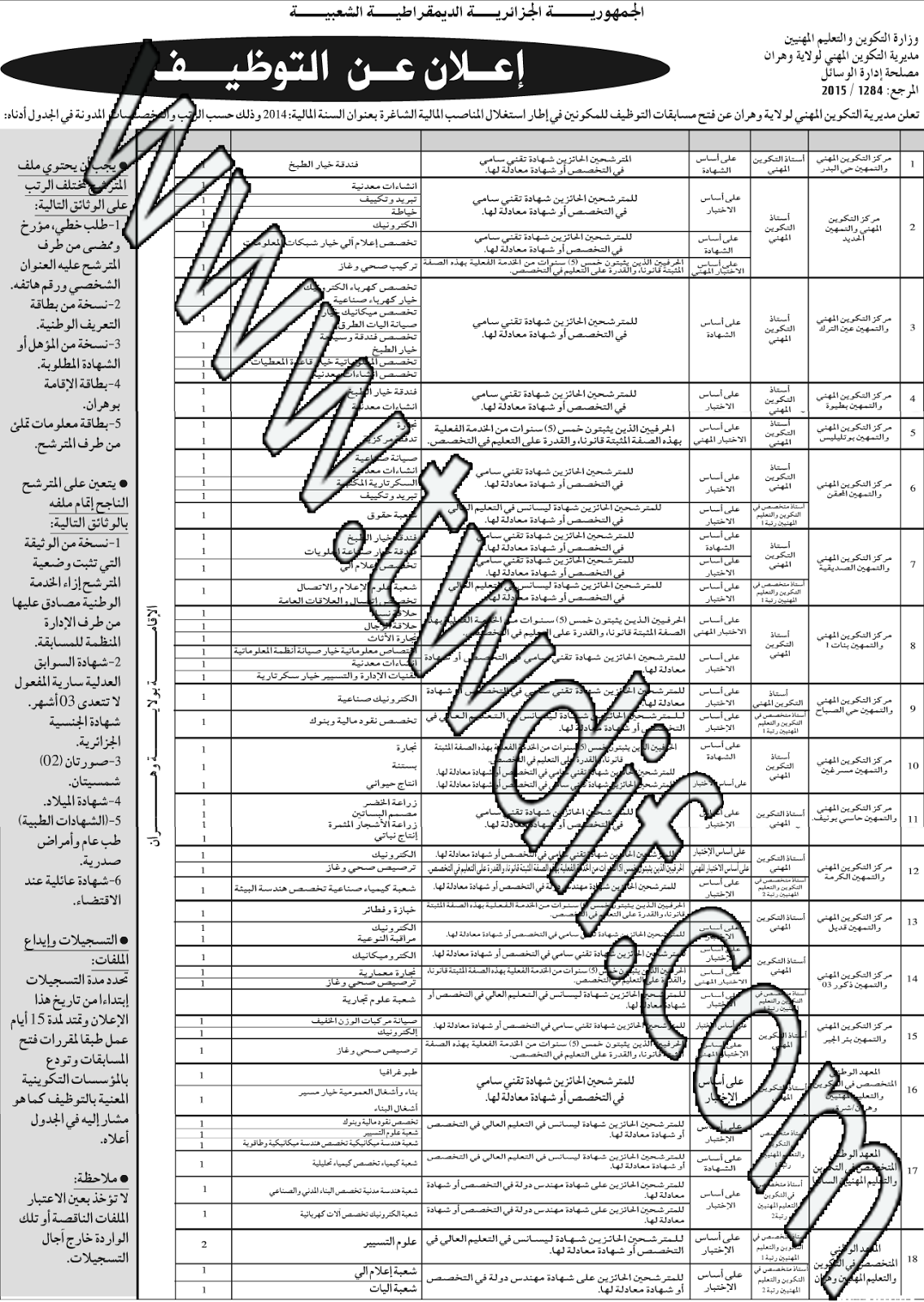 إعلانات التوظيف الصادرة في الجرائد اليومية الخاصة بشهر أفريل 2015