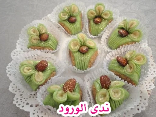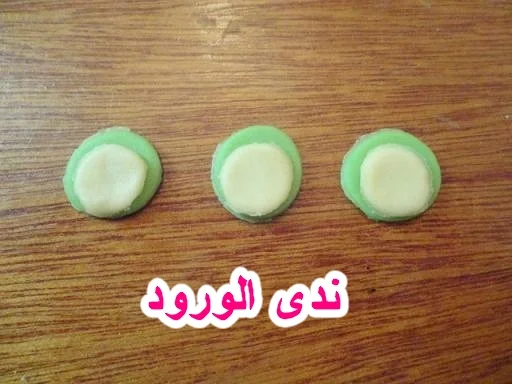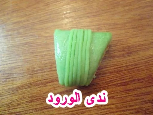 الــــــــــــمــــقادير: العجينة : 3 كيلات فرينة 3 /4 كاس مارغارين ذائبة – انا دائما استخدم هذا المكيال في جميع حلوياتي المعسلة - فانيليا - ماء زهر الحشو: 3 كيلات لوز مرحي كيلة سكر عادي 1 ملعقة صغيرة فانيليا 3 ملاعق كبيرة زبدة ذائبة للتزيين: حبات لوز صحيحة بقشورها تحضير العجينة : نخلطها ثم نعمل حفرة في الوسط ونفرغ المارغارين الذائبة ونخلط براحة اليدين حتى تمتزج الزبدة مع الفرينة نجمع العجينة بماء الزهر حتى الحصول على عجينة متماسكة نعجنها قليلا فقط ليس كثيرا مجرد تتماسك لكي تصبح ملساء نأخد جزء من العجينة البيضاء ونحتفظ به على حدى والعجينة المتبقية نضيف له ملون غذائي أخضر فسقي ( ملاحظة مهمة ) أنا هنا ااستخدمت ملون غذائي فستقي اللون لكن لم يعطيني النتيجة المرجوة العجينة اخدت اللون الاصفر المخضر الفاتح جدا لهذا لجأت لمزج الملون الازرق + الاصفر كي حصلت على لون فستقي جميل الموجود في الصورة ثم نقطعها الى قطع ونكورها ونغطيها بفيلم غذائي ونتركها ترتاح من جهة نحضر الحشو نخلط اللوز + السكر + الفانيليا + الزبدة الذائبة وبعدها نخفق 2 بيضات في صحن ونضيف البيض بالتدريج للحشو حتى يصبح حشو متماسك وغير طري طريقة التشكيل : على طاولة عمل مرشوشة بالفرينة نبسط العجينة بالحلال ونمررها في الماكينة في الرقم رقم 1 ، ثم في الرقم 3 ، ثم في الرقم 5 ، وأخيرا في الرقم 7 نقطع العجينة بشكل مستطيل كبير نضع الحشو على طرفي ![]() ونلفه لفتيين ثم نقطع ![]() ونلفه مرة ثانية بين يدينا لتضبيط الحربوش نبسط الحربوش قليلا من فوق بهذا الشكل ![]() ثم نقطع مثلثات بهذا الشكل ![]() ![]() نقطع خيوط من العجينة الخضراء في ماكينة العجينة بهذا الشكل ![]() نأخد مثلث ندهنه ببياض البيض بواسطة فرشاة ![]() نأخد خيط من العجينة الخضراء ونلفه بهذا الشكل حول المثلث بحيث نشكل 6 خطوط ![]() ونبسط العجينة الخضراء والعجينة البيضاء ونقطع بغطاءين بحجمين مختلفين بحيث يكون الابيض اصغر من الاخضر ![]() نضع الدائرة البيضاء على الدائرة الخضراء كما موضح في الصورة ![]() ونجمع طرفي كل دائرتين مع بعض بهذا الشكل ثم نجمع الثلات أشكال مع بعضها مثل الصورة ![]() نعمل ثقب بهذا الشكل ![]() بمساعدة عود أسنان نثبث الاشكال ونزين بحبة لوز صحيحة مثل الصورة ![]() نترك الحلوى ترتاح على الاقل 4 ساعات ثم نخبزها في فرن 160° لمدة 15 د إلى 20 دقيقة كحد أقصى فور خروج الحلوى من الفرن نضعها في عسل مخفف بماء الزهر ![]() نتركها فوق مصفاة لانزال الفائض من العسل ثم نرشها بجزيئات لماعة ذهبية اللون وتقدم في صحون ورقية ![]() الصور المصغرة للصور المرفقة