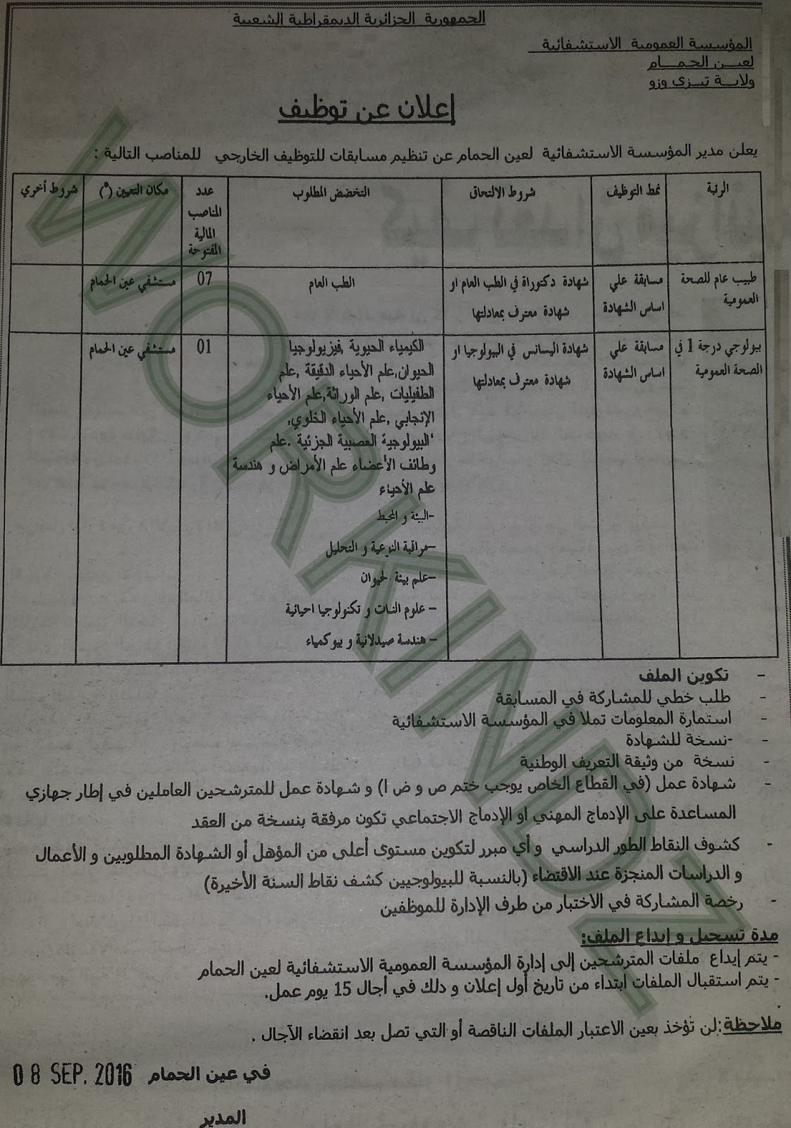 التوظيف بالمؤسسة الاستشفائية لعين حمام تيزي وزو