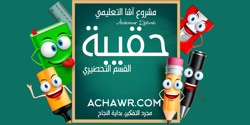 حقيبة التربية التحضيرية، ملفات ووثائق بيداغوجية للأستاذ والتلميذ، نصائح وتوجيهات ) وإنما النص الموجود في الصورة ( حقيبة القسم التحضيري ) وستعطي جمالا وطابعا آخر للموقع من ناحية التنظيم.