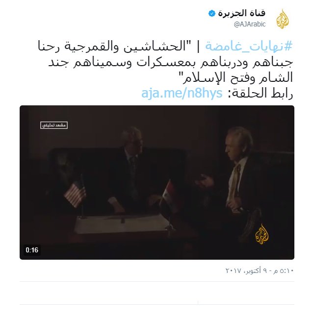 التي كانت تدعمها من اجل عيون السلطان ؟؟ ![]() #نهايات_غامضة | "الحشاشين والقمرجية رحنا جبناهم ودربناهم بمعسكرات وسميناهم جند الشام وفتح الإسلام" رابط الحلقة : https://www.aljazeera.net/programs/a...B9%D8%A7%D9%86 |